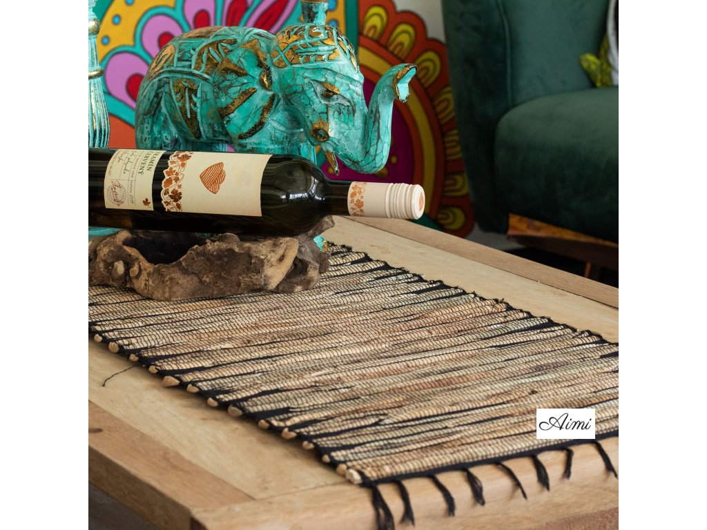 Prírodné Prestieranie Vodný Hyacint - Čierny Tiger so Strapcami - 150 cm