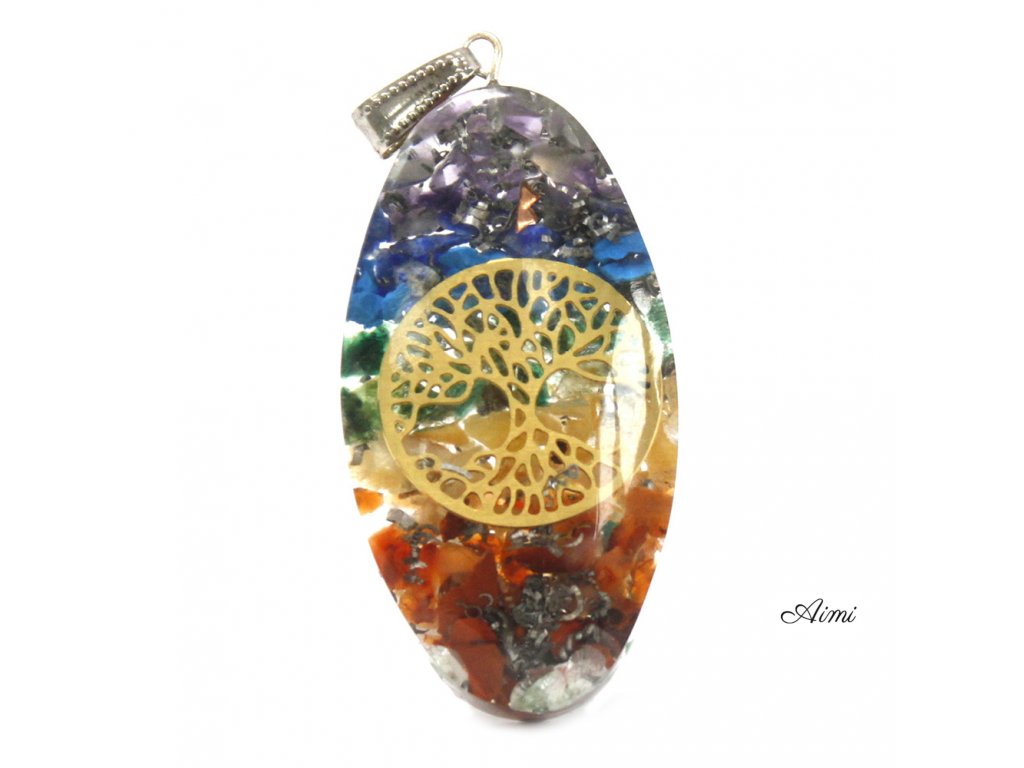 Orgonitový Prívesok - 7 Kameňov Chakry so Stromom - Ovál