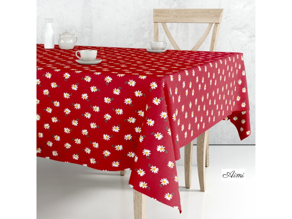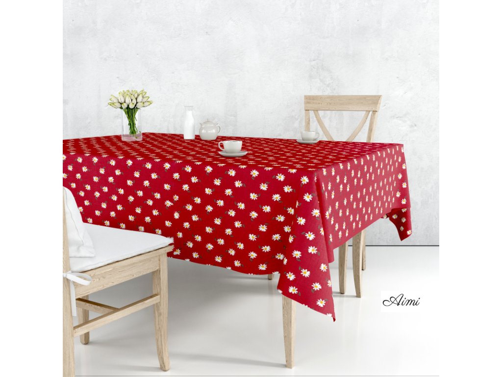 PVC obrus v šírke 140cm - celá rolka 20 metrov FLORISTRA - motív Kvietky na ČERVENOM