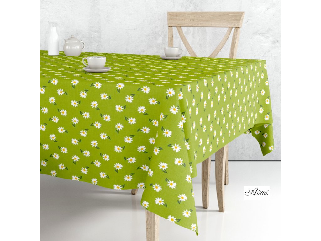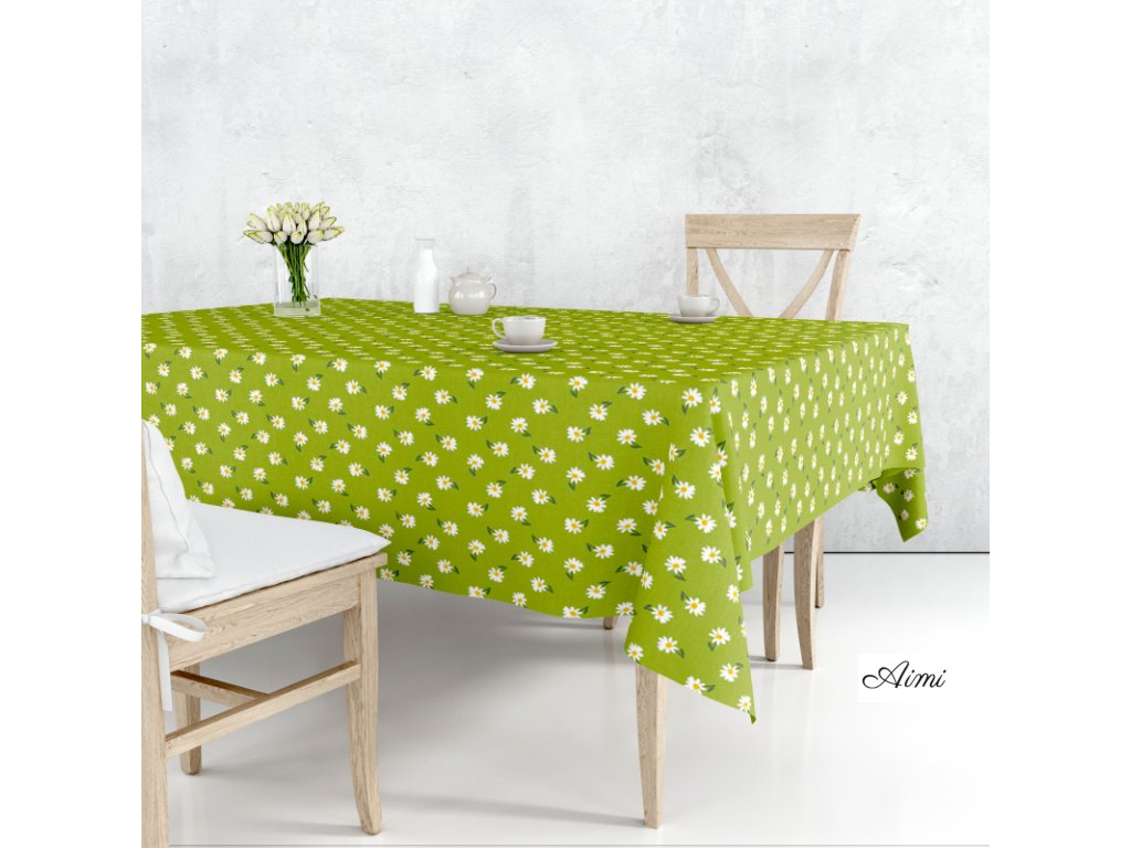 PVC obrus v šírke 140cm - celá rolka 20 metrov FLORISTRA - motív Kvietky na ZELENOM