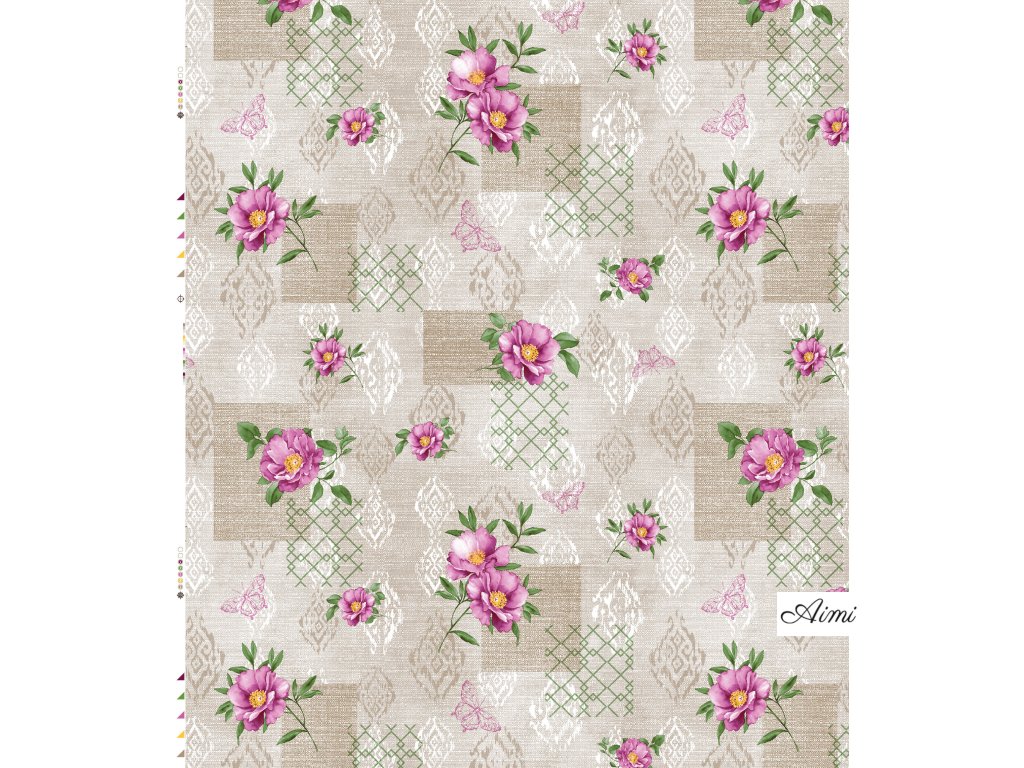 PVC obrus v šírke 140cm - celá rolka 20 metrov - motív KVIETKY na ornamente mix farieb