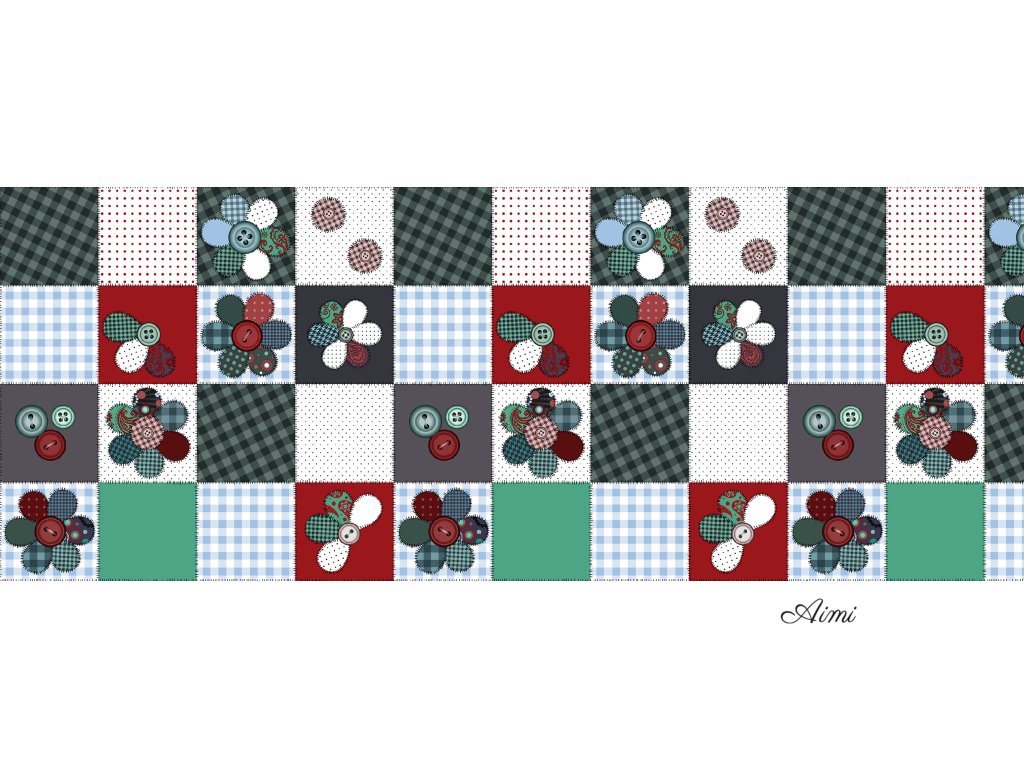 PVC obrus v šírke 140cm - celá rolka 20 metrov - motív Bordový Tyrkys Kockovaný Kvietky