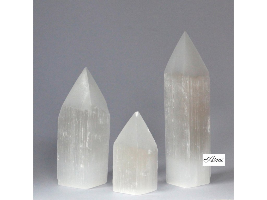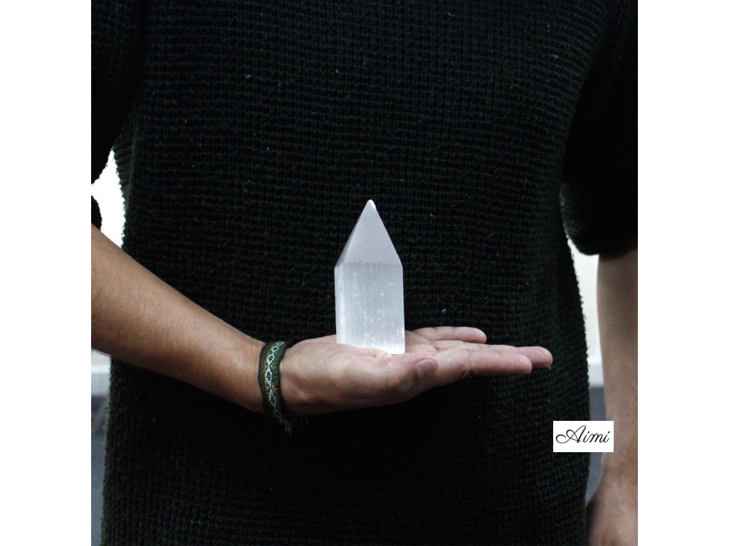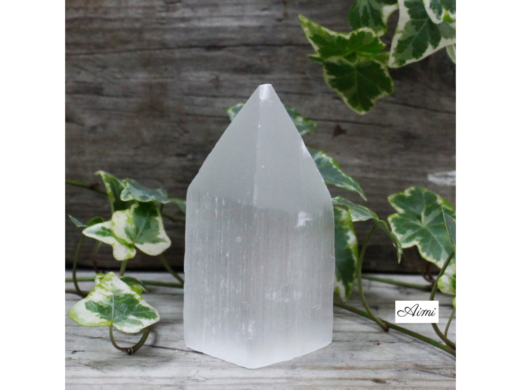 Benefity: Selenit je veľmi uznávaný a je jeden z najmocnejších kryštálov, čo sa týka liečenia. Tiež sa napája na tretie oko, korunu a éterickú čakru. Niektorí ľudia hovoria, že vyjadruje čistotu a úprimnosť. Tiež sa hovorí, že donúti osobu, ktorá tento predmet drží byť úprimnú k sebe samej.