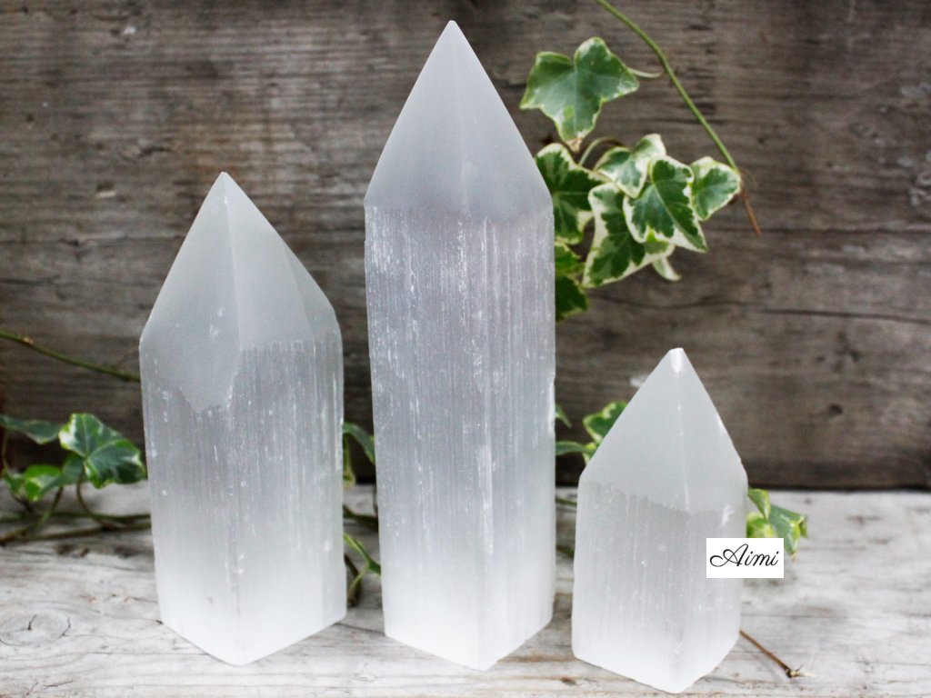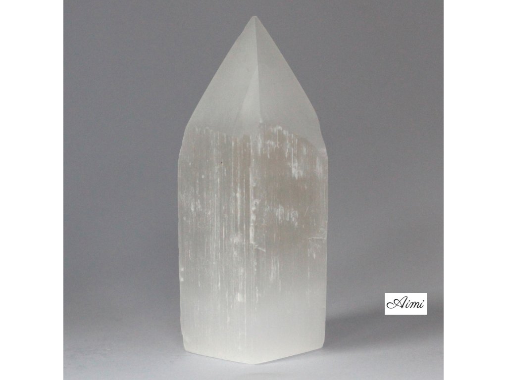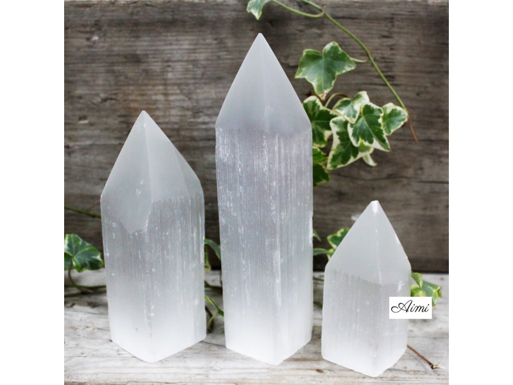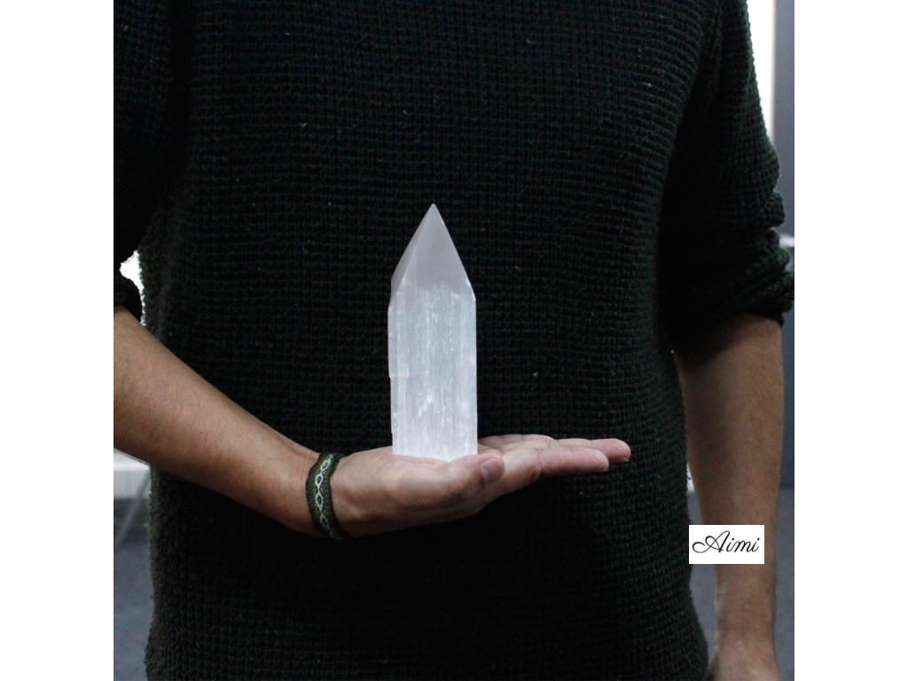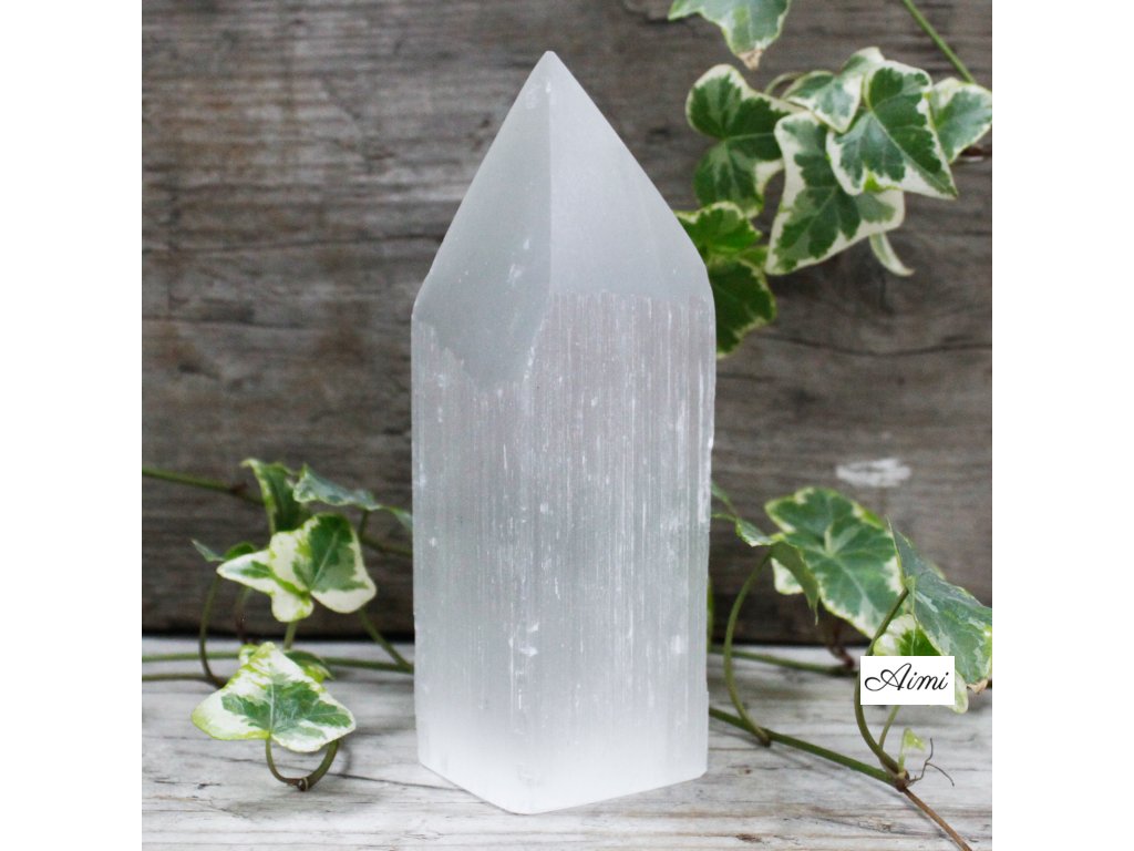 Benefity: Selenit je veľmi uznávaný a je jeden z najmocnejších kryštálov, čo sa týka liečenia. Tiež sa napája na tretie oko, korunu a éterickú čakru. Niektorí ľudia hovoria, že vyjadruje čistotu a úprimnosť. Tiež sa hovorí, že donúti osobu, ktorá tento predmet drží byť úprimnú k sebe samej.