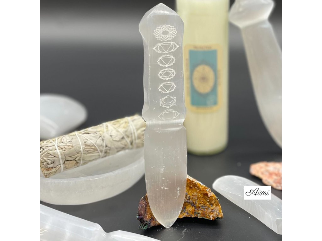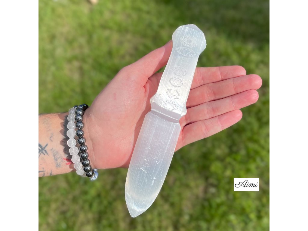 Tieto predmety sú dekoratívne, ale majú silný ezoterický význam. Selenitové nože dokážu prerušiť negatívne väzby, či už s inou osobou, situáciou alebo miestom. Symbolicky tieto väzby prerušia a bránia nám v napredovaní.