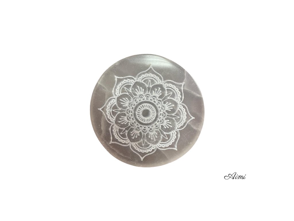 Stredná Selenitová Podložka 10cm - Lotus Mandala