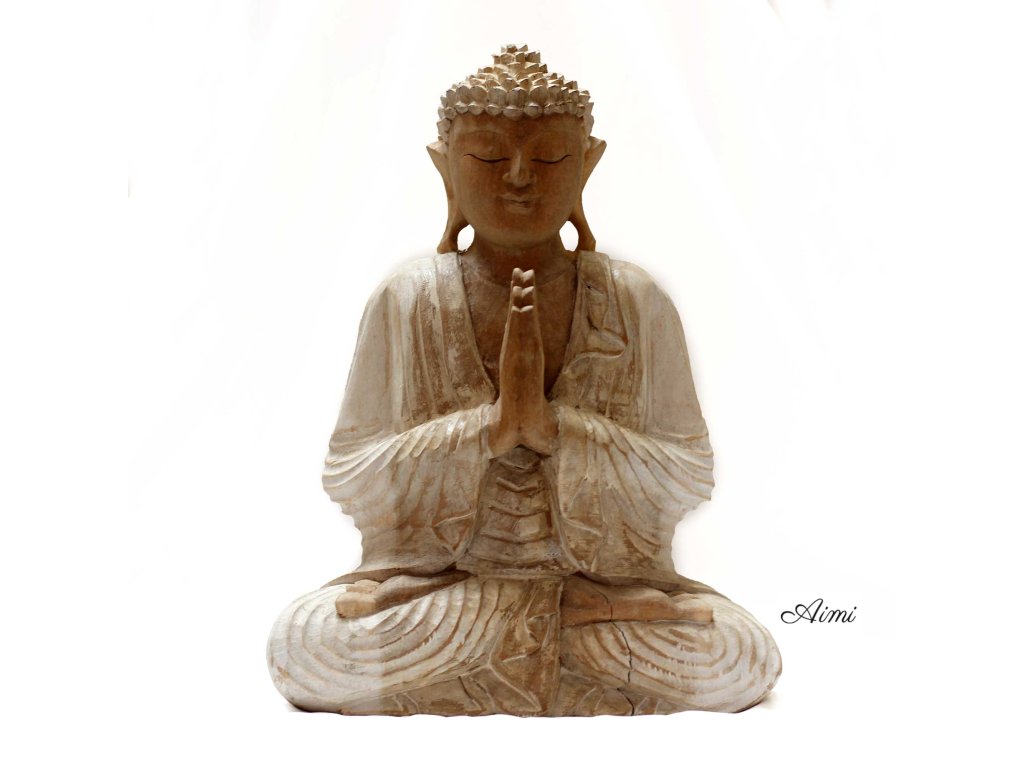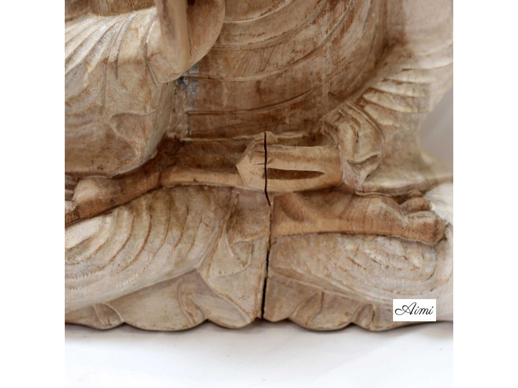 Ručne Vyrezávaná Socha Budhu - 30cm Vitajte - Biela Vymývaná - Poškodená