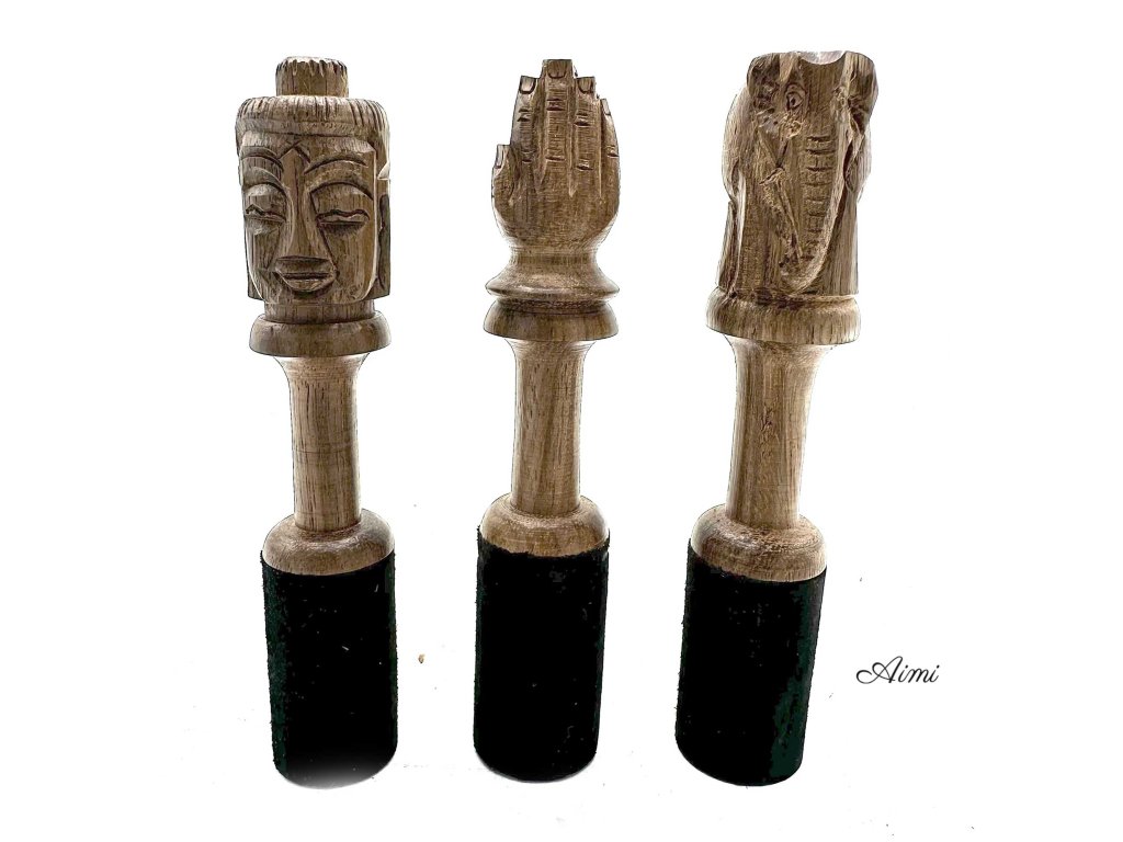 Drevená Palička - 14 cm - Vyrezávaný Budha