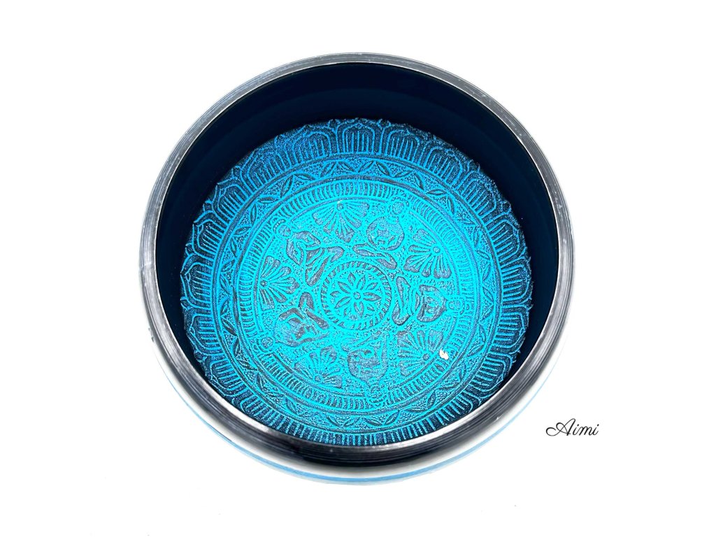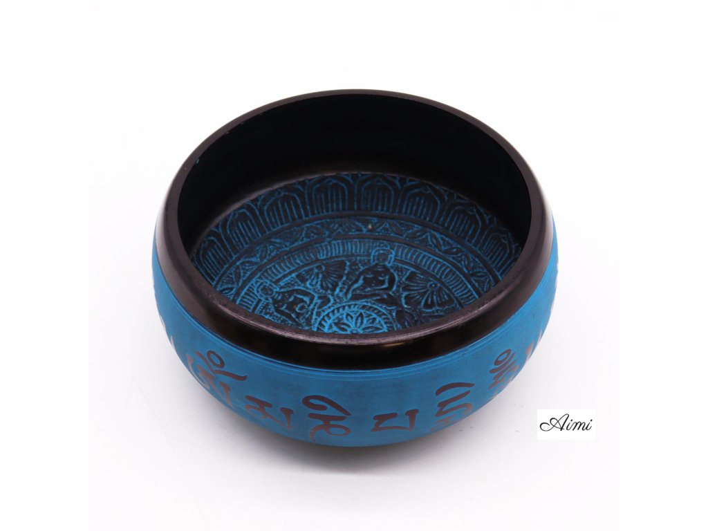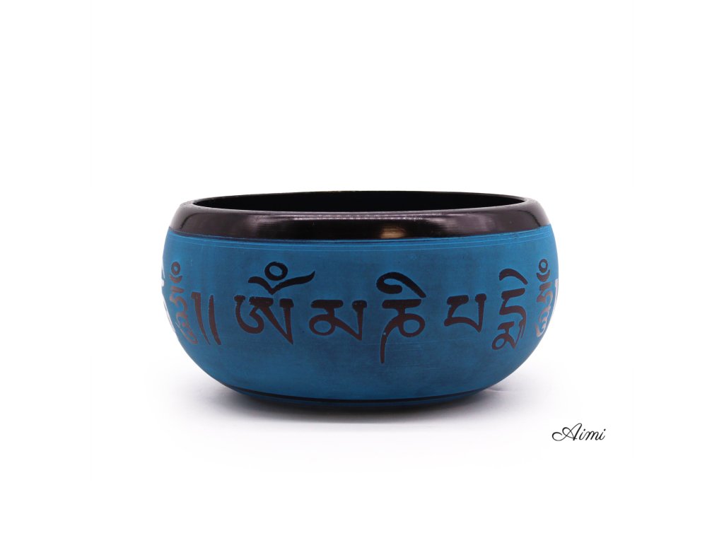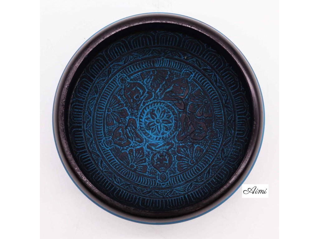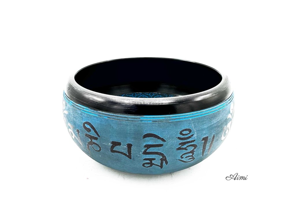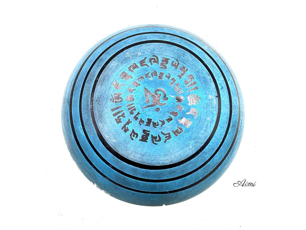 Spievajúca Miska zo Zemného Prášku - Modrá Mantra Piatich Budhov - 16cm
