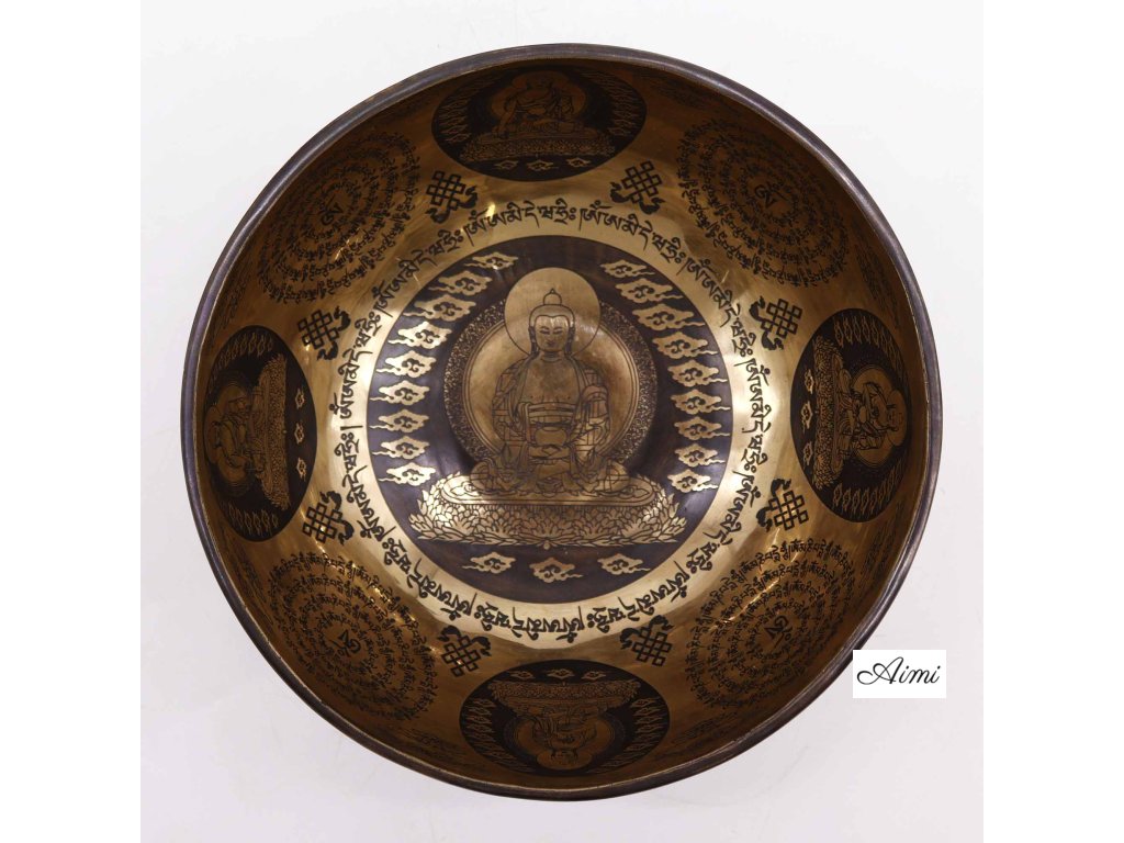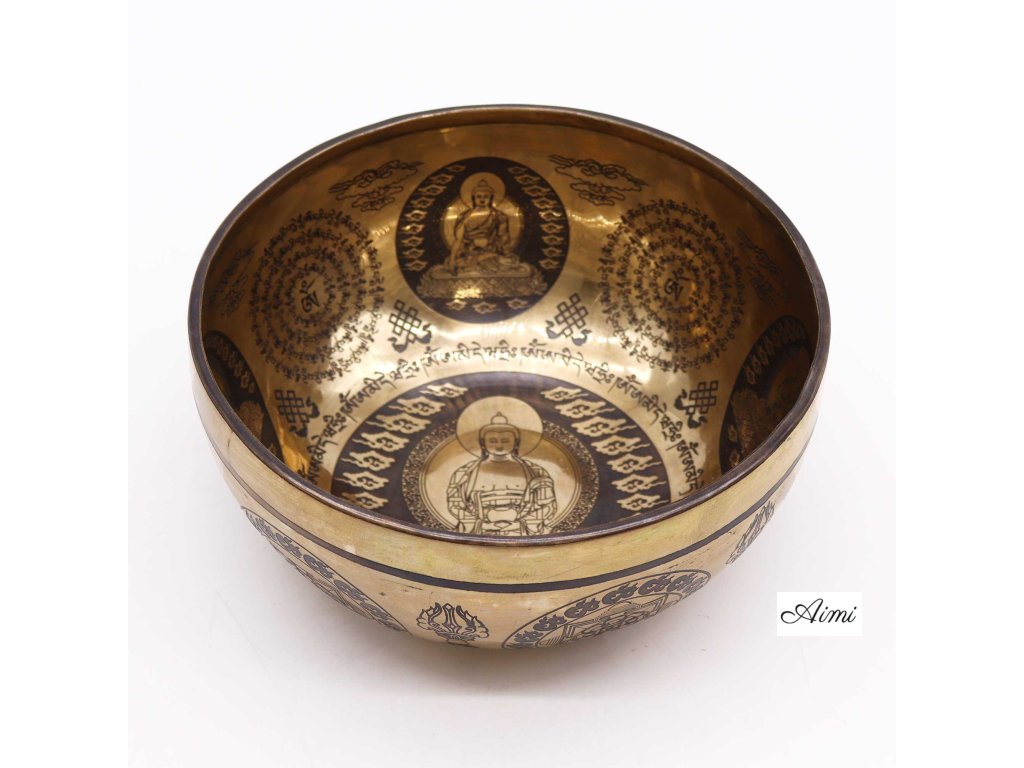 Tibetská Liečivá Gravírovaná Miska - 21cm - 5 Budhov