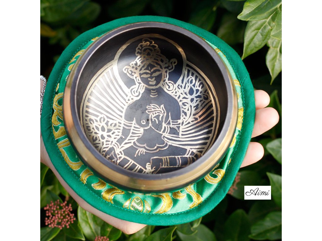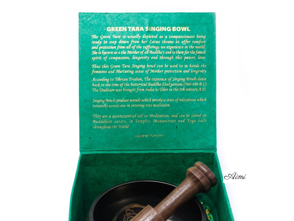 Veľkoobchodná Zelená Tara Spievajúca Miska. Zelená Tara je zvyčajne zobrazená ako súcitná a pripravená odstúpiť z trónu Lotosu, aby ponúkla pohodlie a ochranu pred všetkými utrpeniami, ktoré zažívame v každodennom svete. Zelená Tara je taktiež známa ako matka všetkých Budhov.