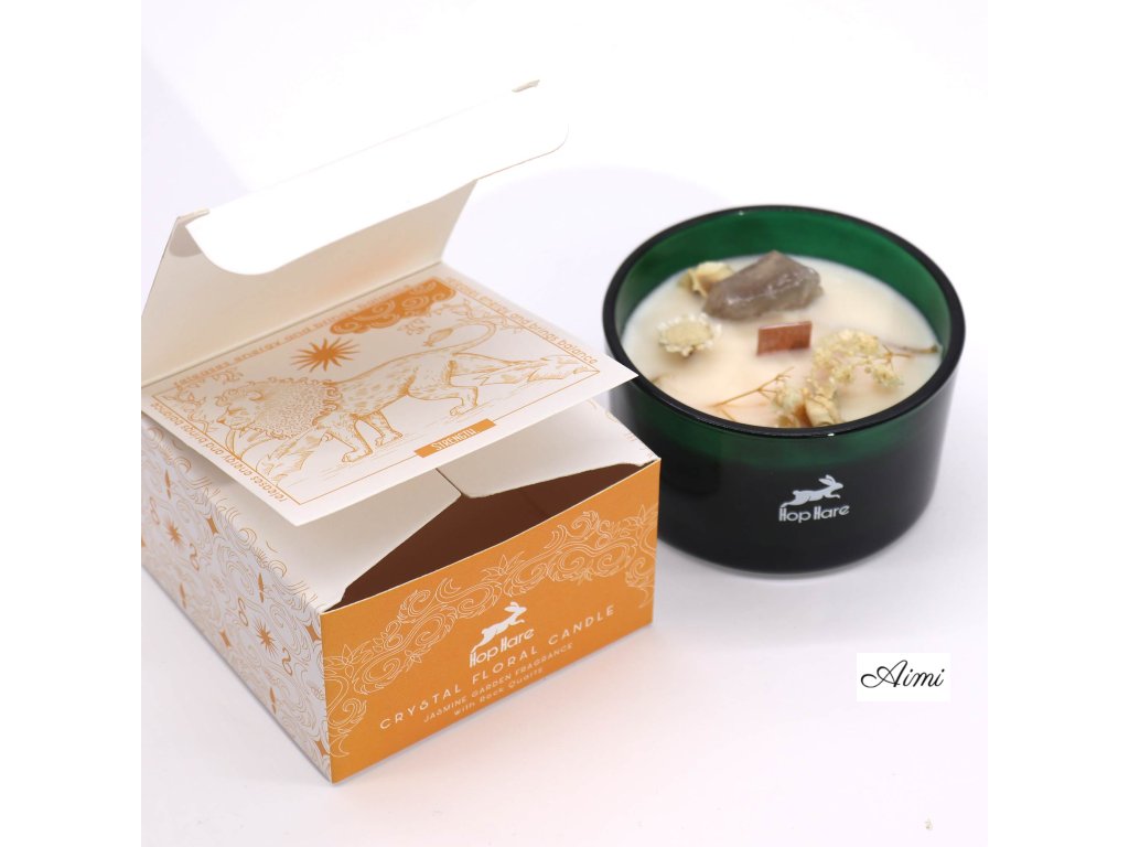 Každá sviečka Hop Hare je ručne vyrobeným majstrovským dielom, zo sójového vosku, zdobený drahokamami a jemne vylepšený sušenými kvetmi. s veľkorysou 22-hodinovou dobou horenia, ktorá zaisťuje, že kúzlo vydrží.