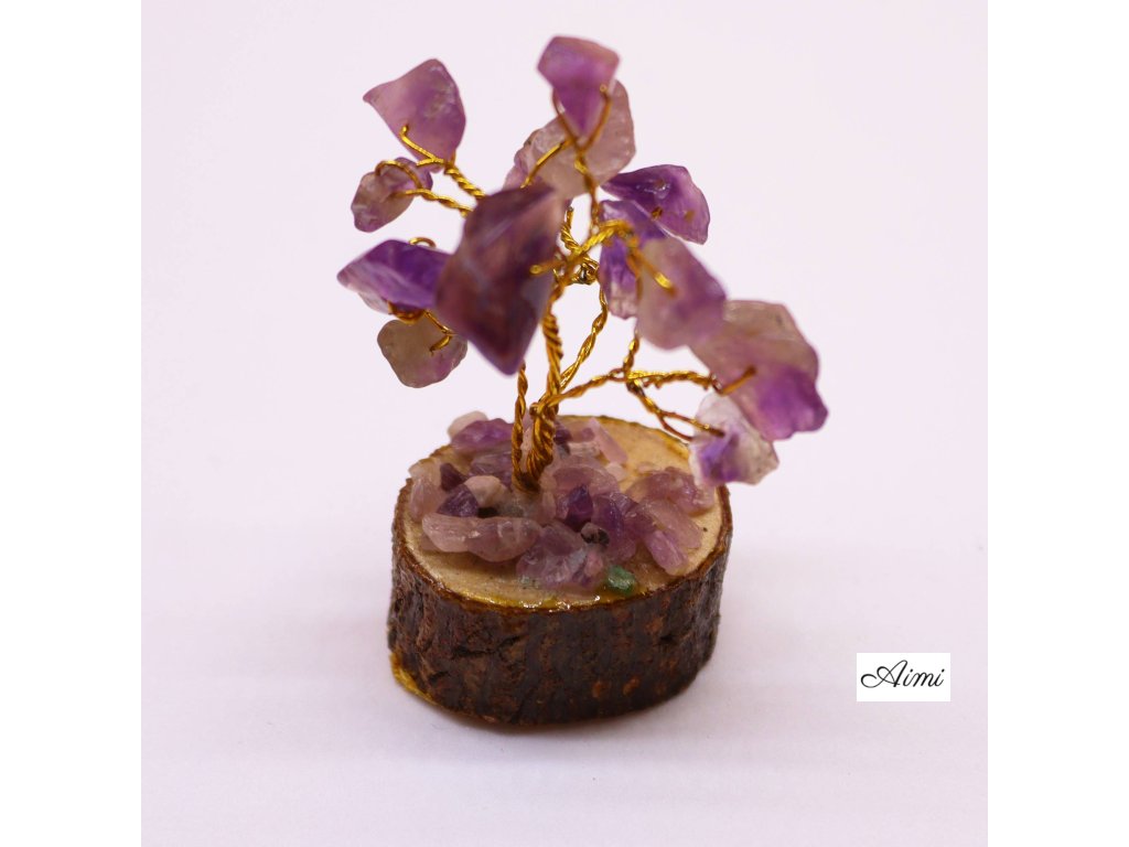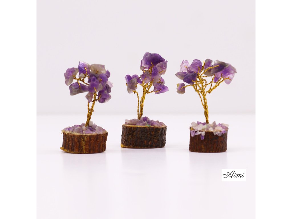 MGemT-14 - 12x Mini Stromčeky z Drahých Kameňov na Drevenej Základni - Ametyst (15 kameňov)