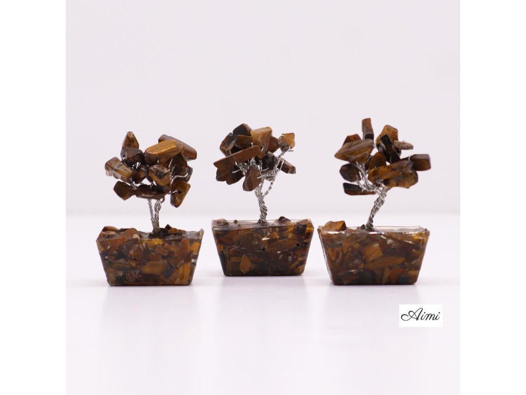 MGemT-03 12x Mini Stromčeky z Drahých Kameňov na Orgonitovej Základni - Tigrie Oko (15 kameňov)