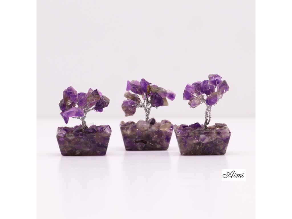 MGemT-04 - 12x Mini Stromčeky z Drahých Kameňov na Orgonitovej Základni - Ametyst (15 kameňov)