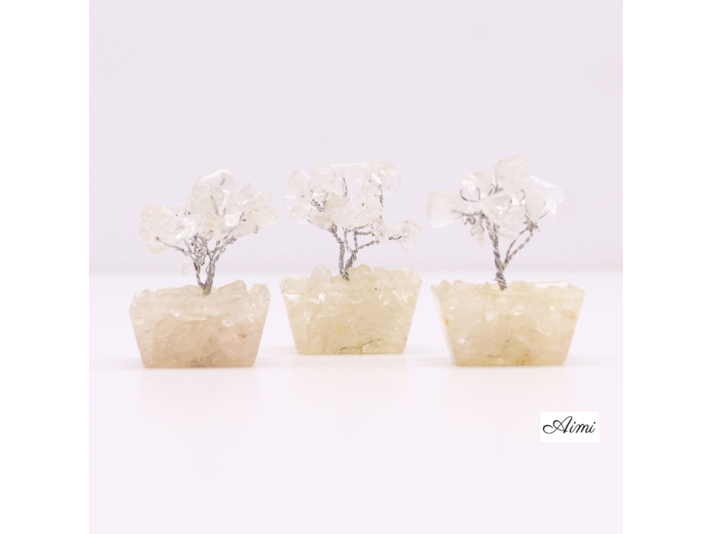 MGemT-15 - 12x Mini Stromčeky z Drahých Kameňov na Drevenej Základni - Skalný Kremeň (15 kameňov)