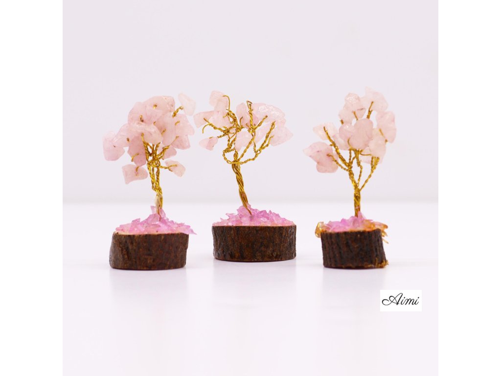 MGemT-12 - 12x Mini Stromčeky z Drahých Kameňov na Drevenej Základni - Ruženín (15 kmeňov)