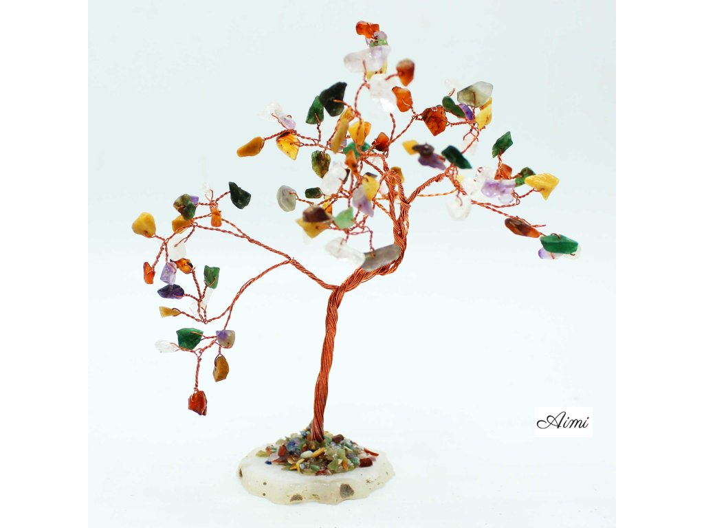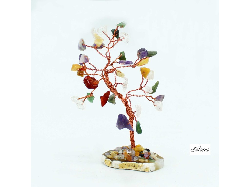 AGemT-01 - Stromček s Drahými Kameňmi - Rôzne - Podstavec z Prírodného Achátu (35 kameňov)