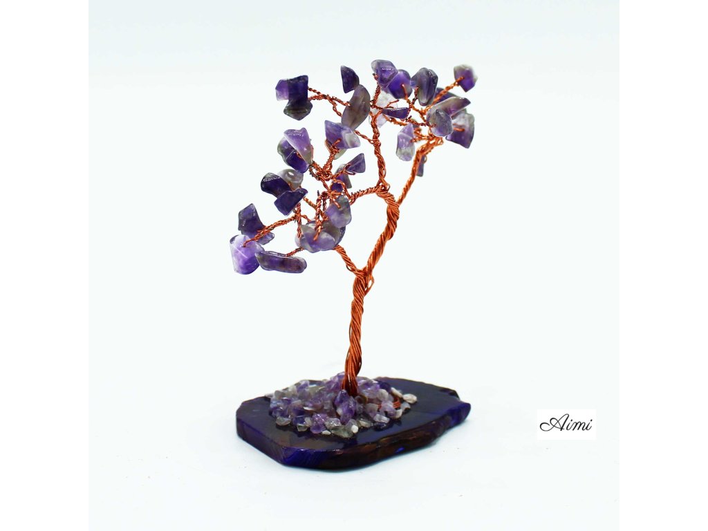 AGemT-02 - Stromček s Drahými Kameňmi - Ametyst - Podstavec z Prírodného Achátu (35 kameňov)