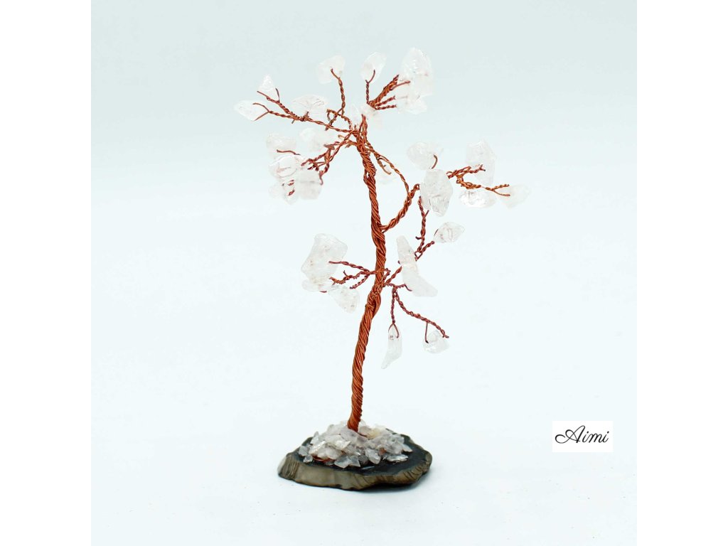 AGemT-12 - Veľký Stromček s Drahými Kameňmi - Kremeň - Podstavec z Čierneho Achátu (100 kameňov)