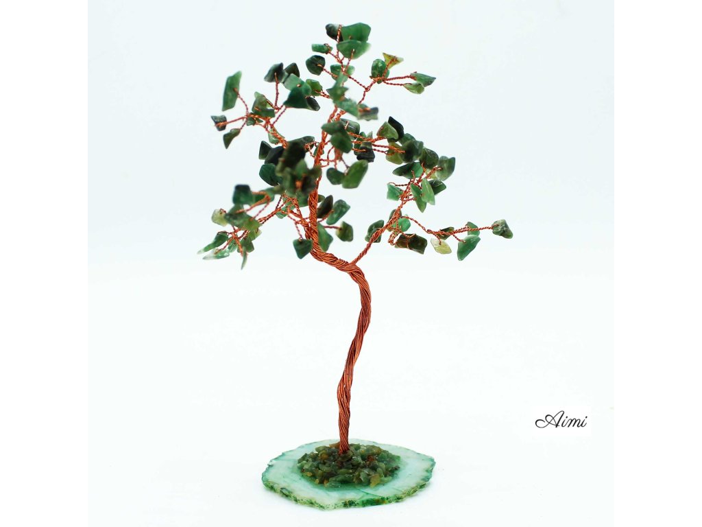 AGemT-10 - Veľký Stromček s Drahými Kameňmi - Zelený Avanturín - Podstavec zo Zeleného Achátu (100 kameňov)