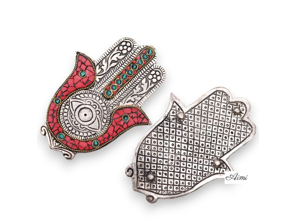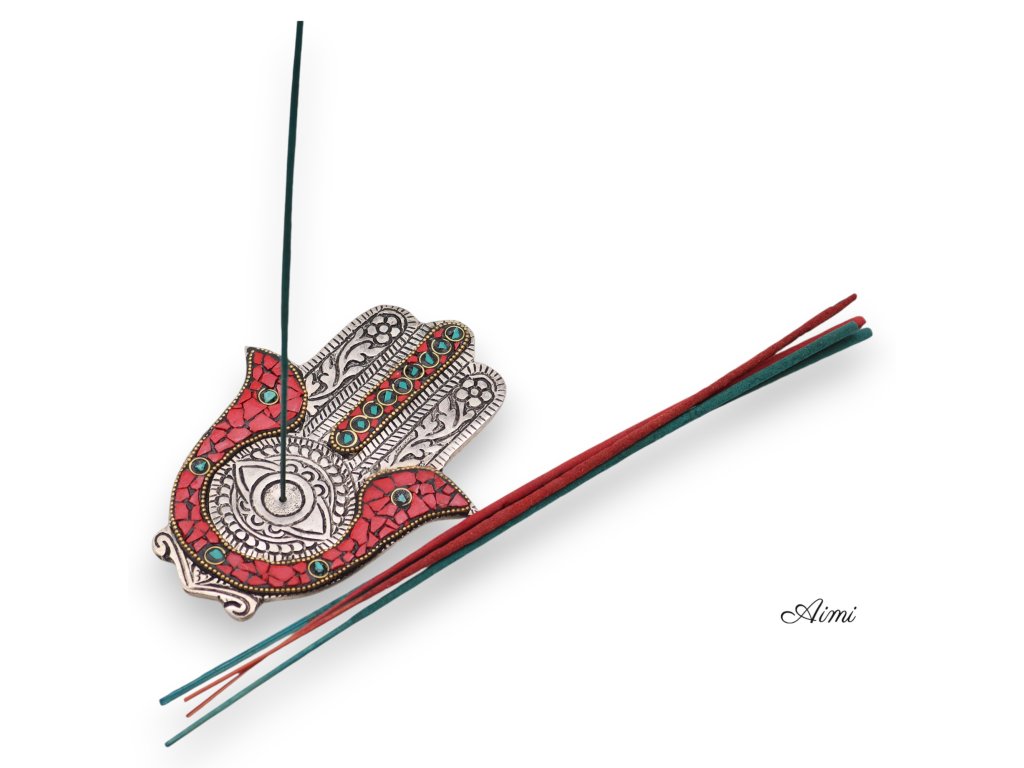 Červený a Zelený Malý Stojan na Vonné Tyčinky Hamsa 13x5,5 cm