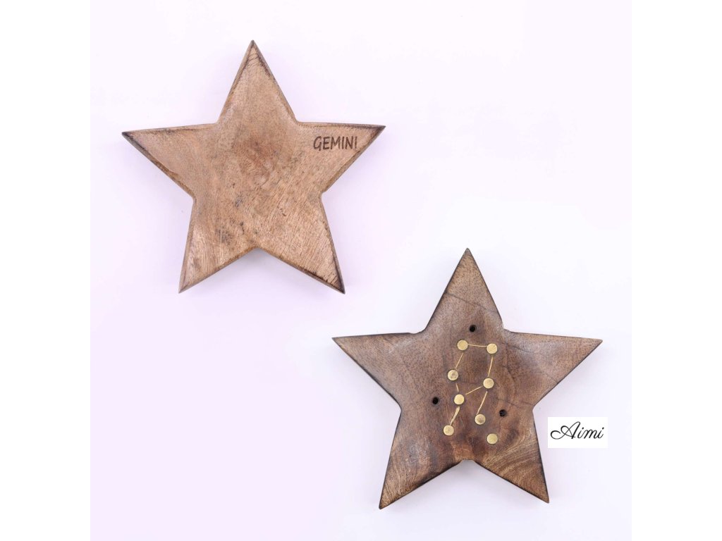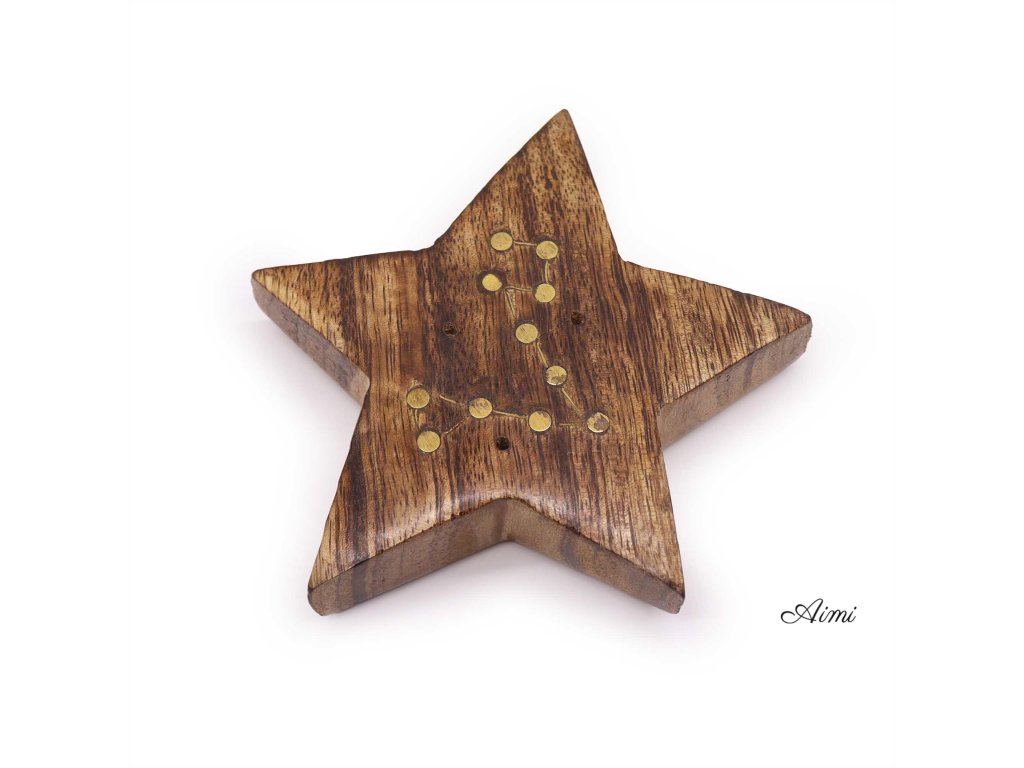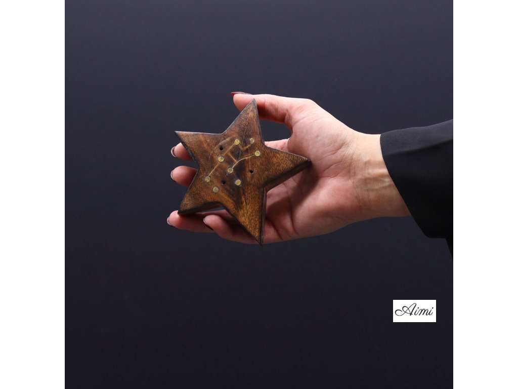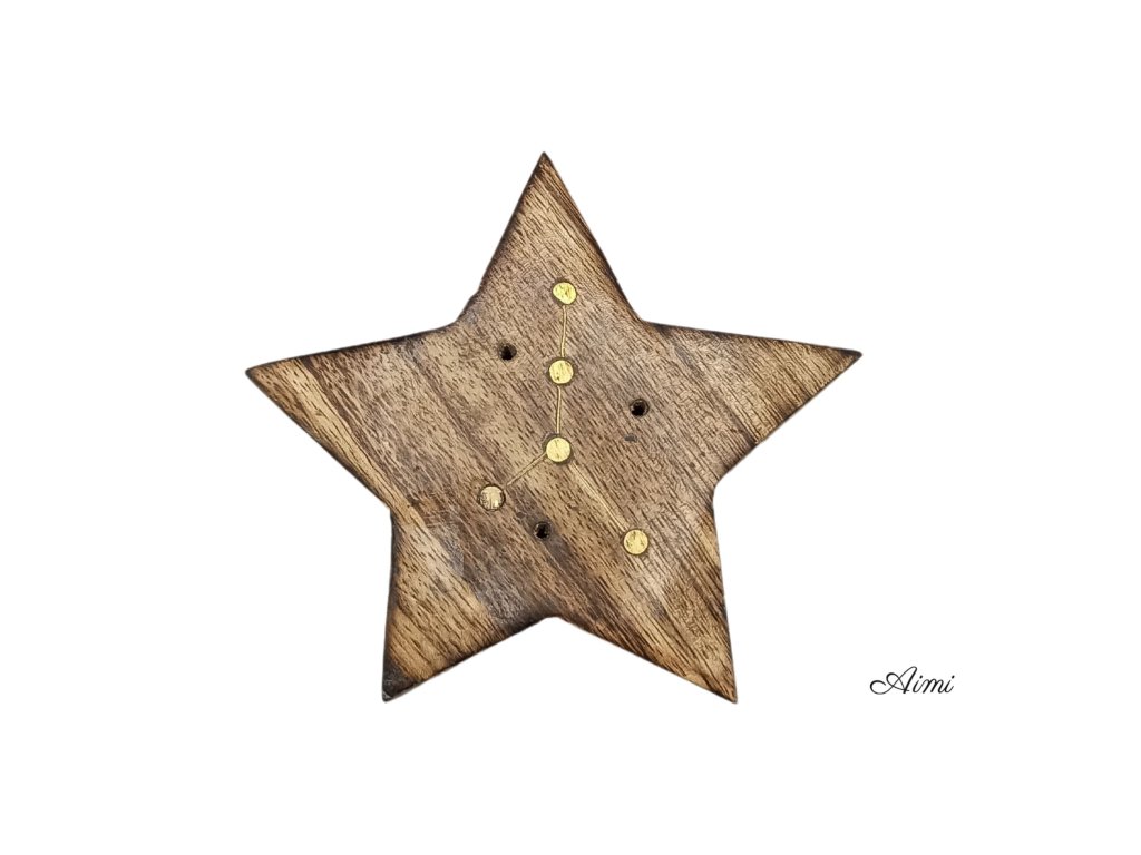 Gravírovaný Mosadzný Stojan na Vonné Tyčinky Znamenie Zverokruhu - Hviezda