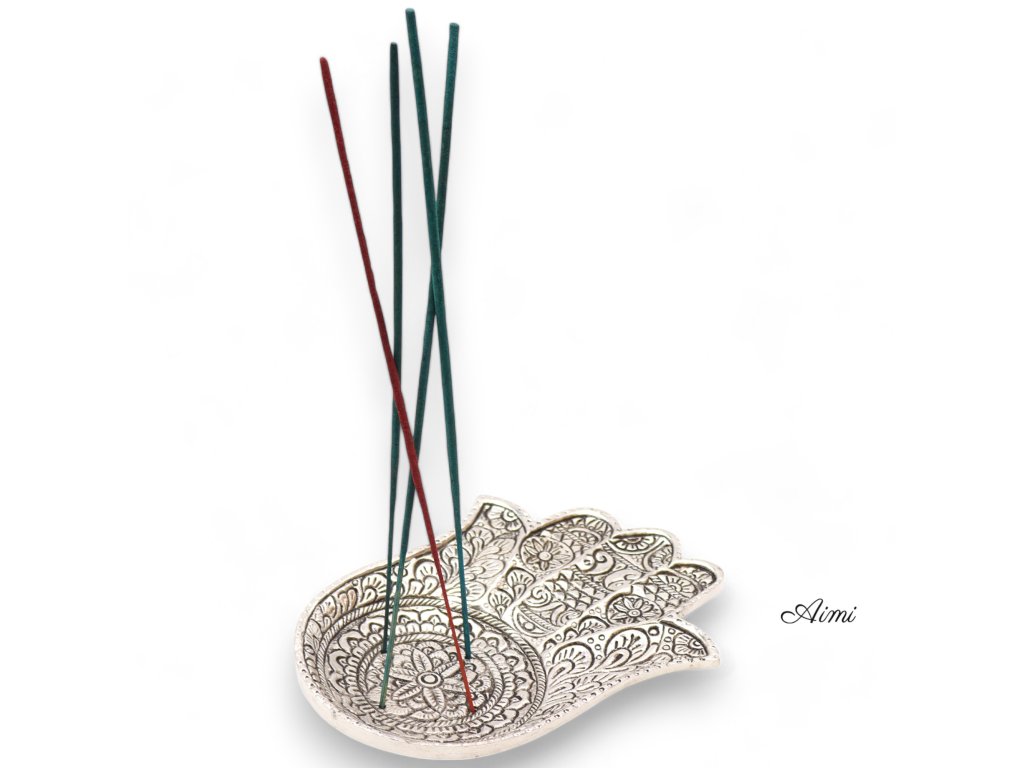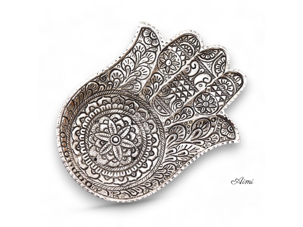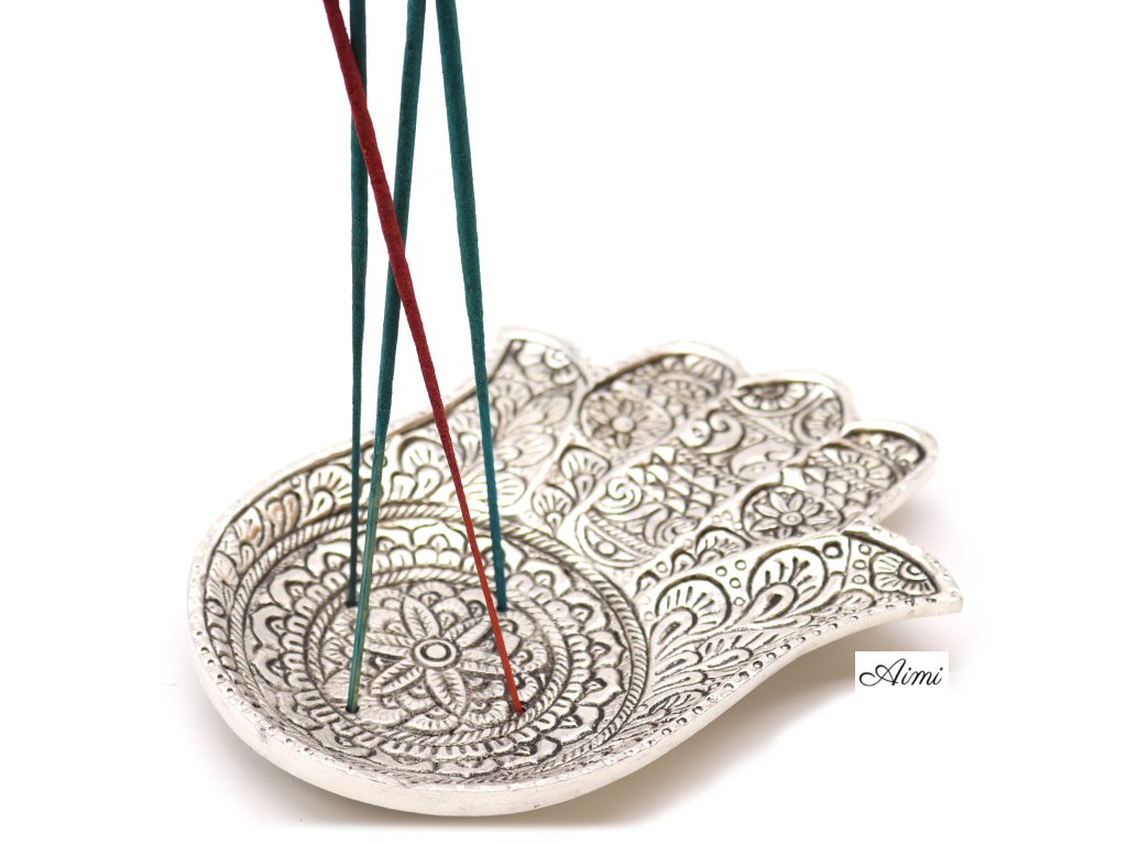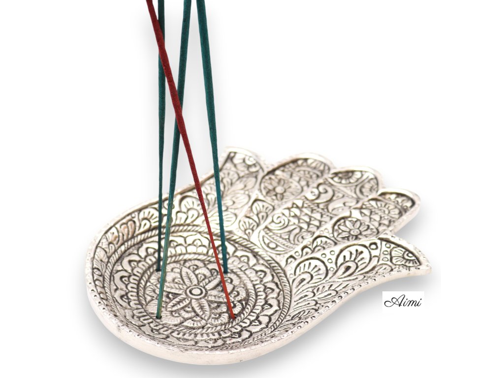 Leštený Hliníkový Stojan na Vonné Tyčinky Veľký Hamsa 18x13cm
