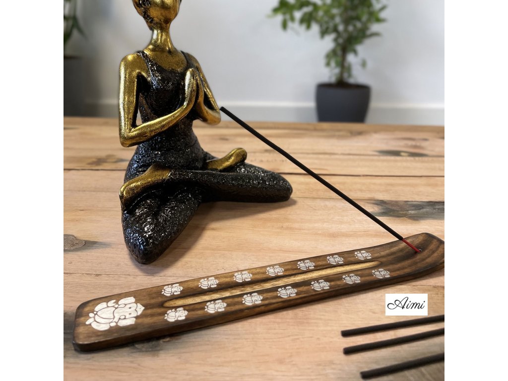 Vyrezávaný Stojan na Vonné Tyčinky z Mangového Dreva s Pálenou Povrchovou Úpravou
