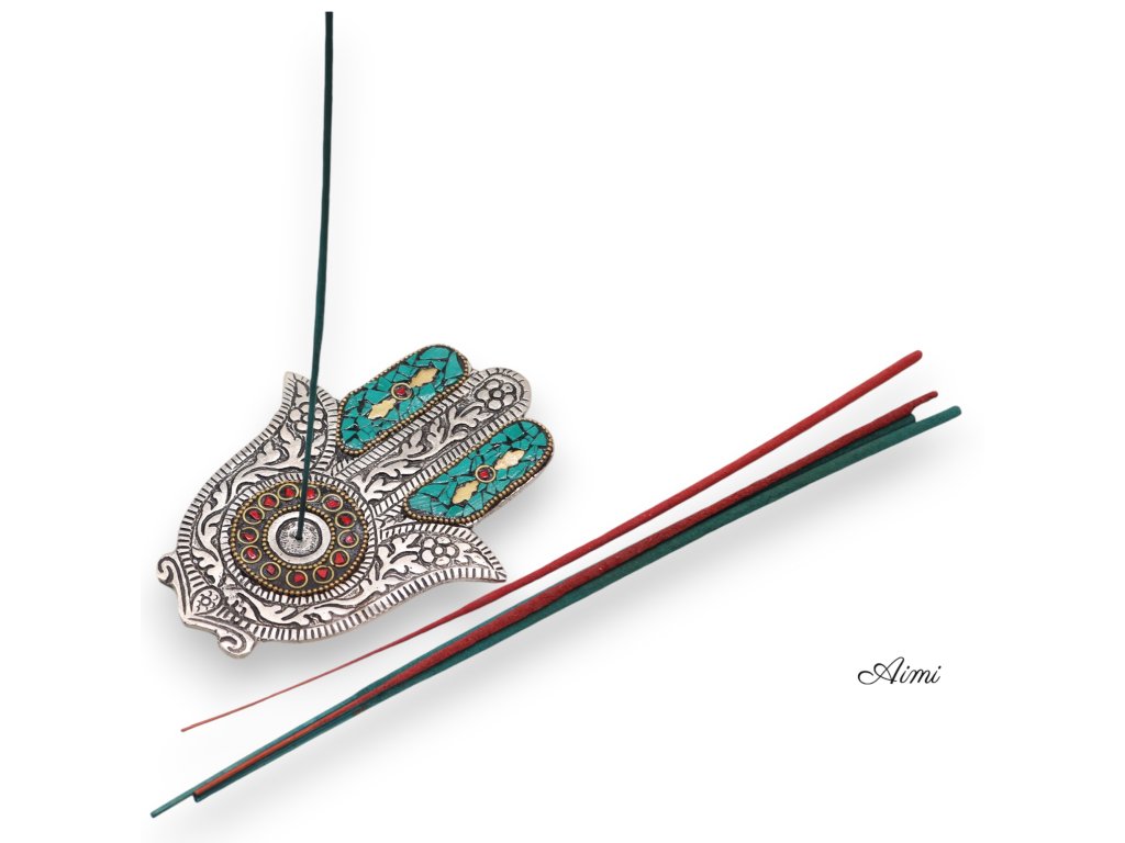 Zelený Malý Stojan na Vonné Tyčinky Hamsa 13x5,5 cm