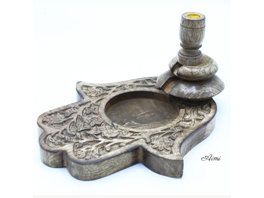 Veľkoobchodné Stojany na Vonné Kužele "Tečúci Dym" z Mangového Dreva - Veľký - Hamsa sú konečne tu! Vyrezávané z Mangového Dreva pôsobia naozaj okúzľujúco! Sú navrhnuté pre Vonné Kužele "Tečúci Dym". Horiaci kužeľ vytvára dym, ktorý je ťažší ako vzduch. Dym prechádza otvorom stojana a tým vytvára efekt "Tečúceho Dymu".