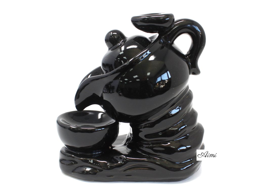 Veľkoobchodné Stojany na Vonné Kužele "Tečúci Dym"Čajová Kanvica boli špeciálne navrhnuté pre Vonné Kužele "Tečúci Dym". Horiaci kužel vytvára dym, ktorý je ťažší ako je vzduch. Dym prechádza otvormi stojanu a tým vytvára efekt "tečúceho dymu". Efekt priláka pohľad a miestnosť sa zaplní príjemnou vôňou kužeľa.