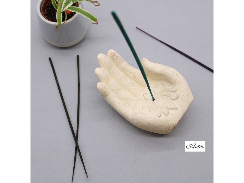 Stojan na Vonné Tyčinky - Ruka- Lotus - Biely