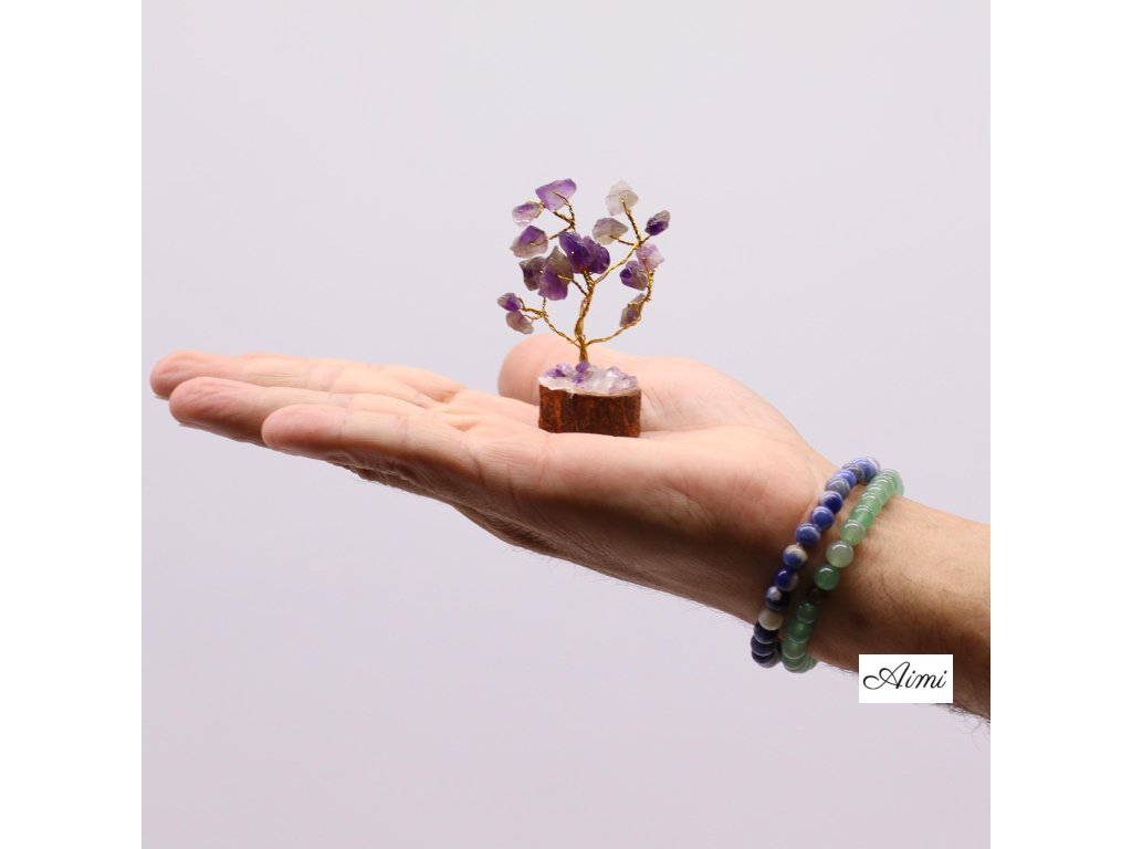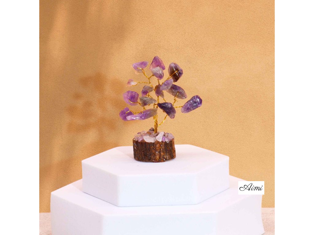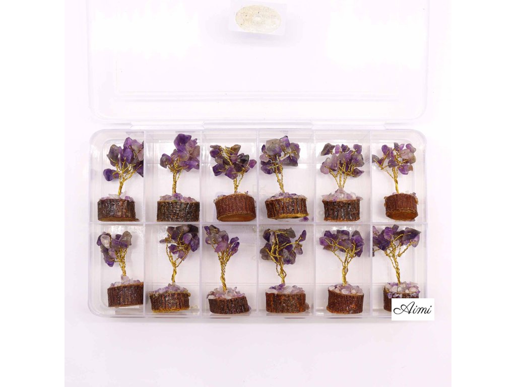 Mini Stromčeky z Drahých Kameňov na Drevenej Základni - Ametyst (15 kameňov)