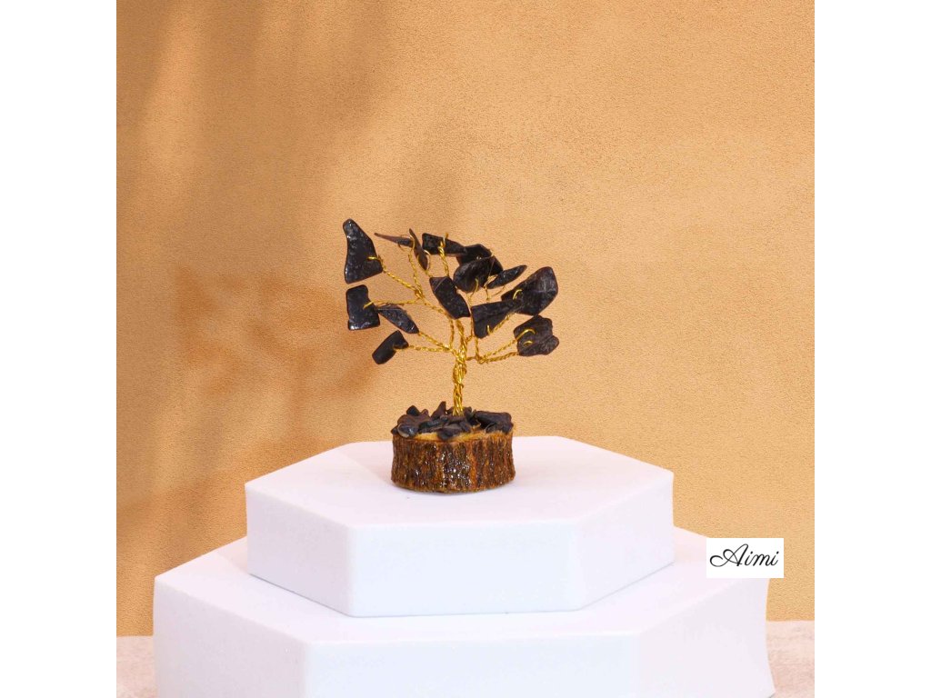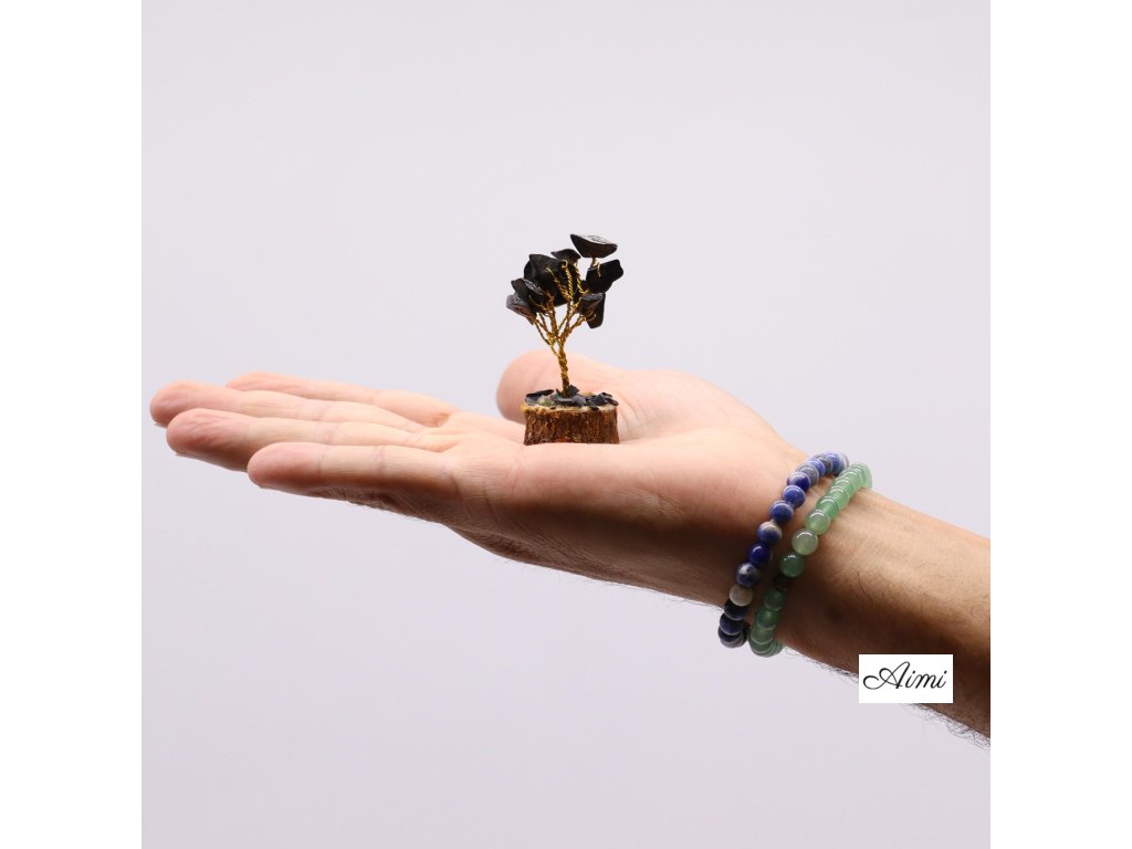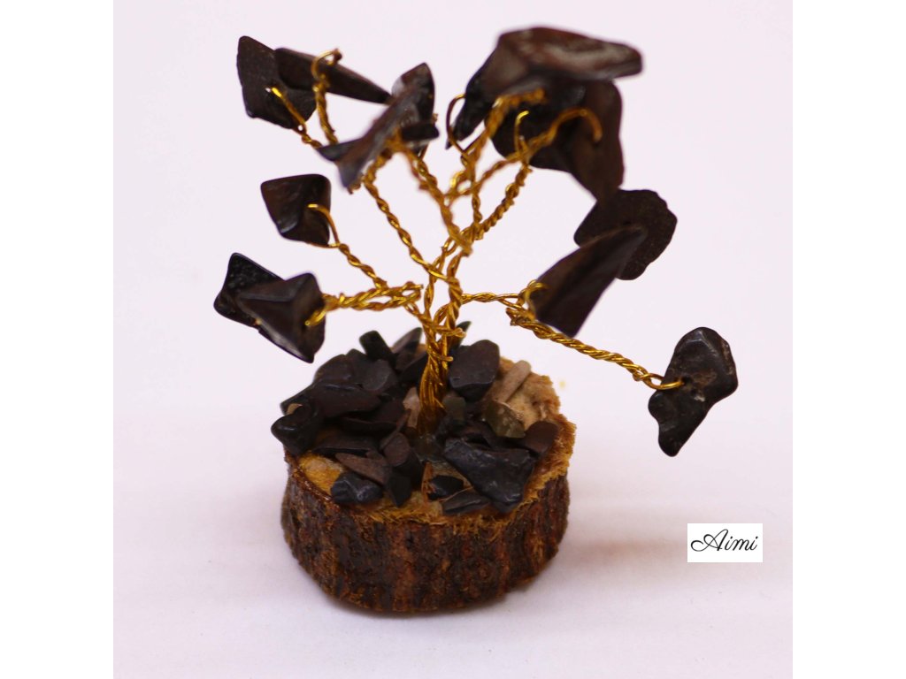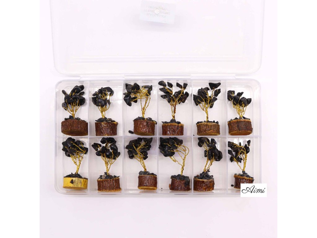 Mini Stromčeky z Drahých Kameňov na Drevenej Základni - Čierny Achát (15 kameňov)
