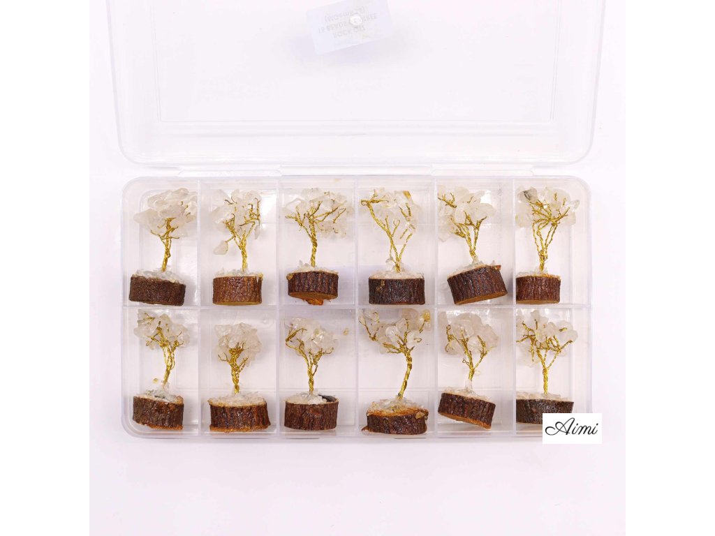 Mini Stromčeky z Drahých Kameňov na Drevenej Základni - Skalný Kremeň (15 kameňov)