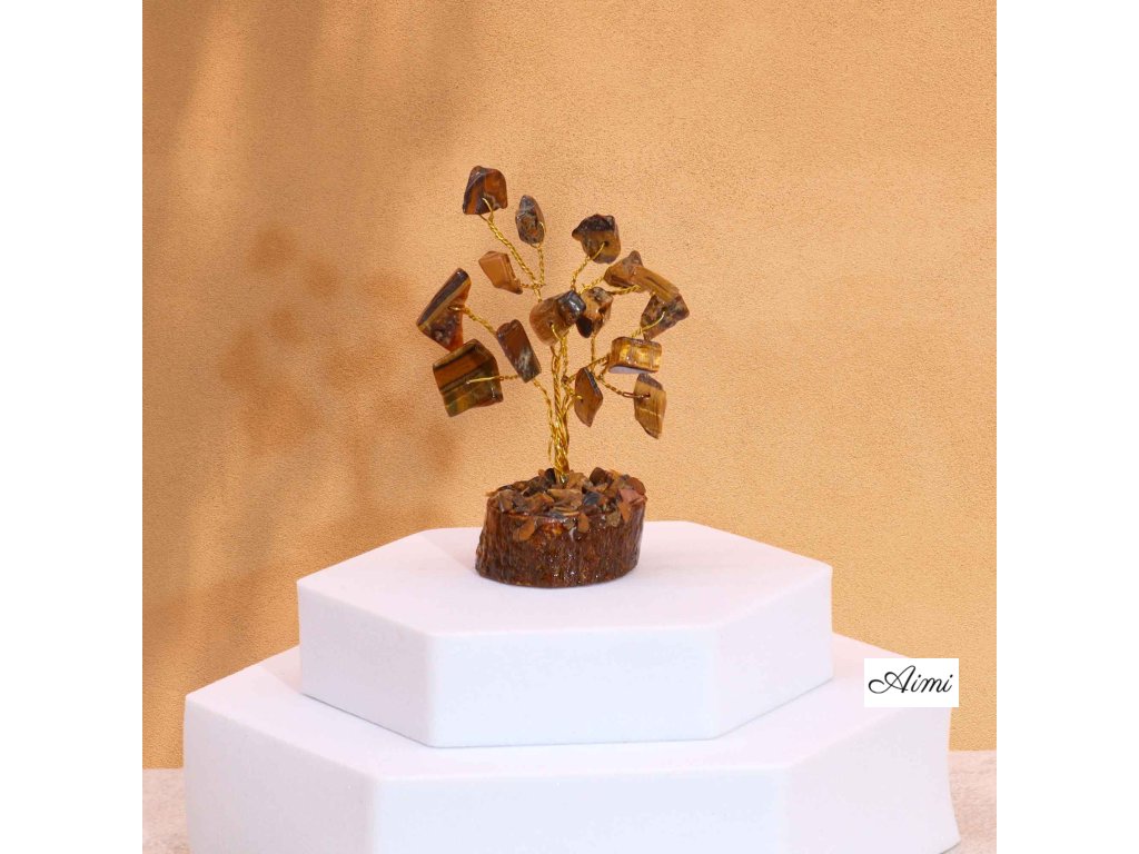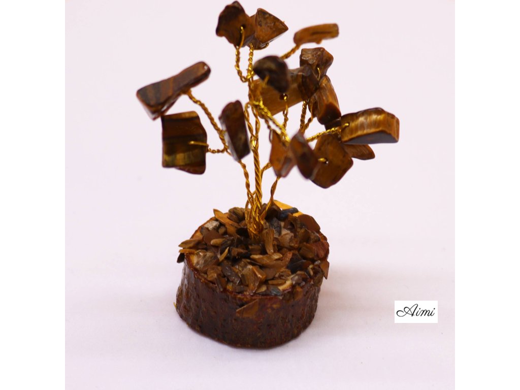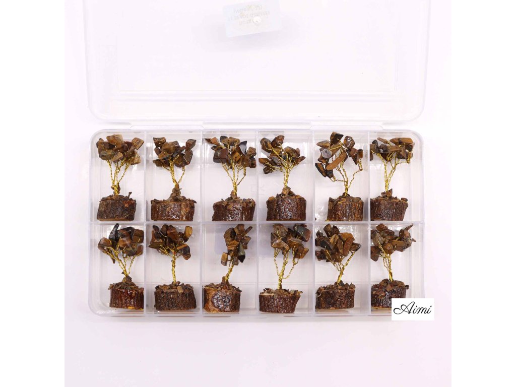 Mini Stromčeky z Drahých Kameňov na Drevenej Základni - Tigrie Oko (15 kameňov)