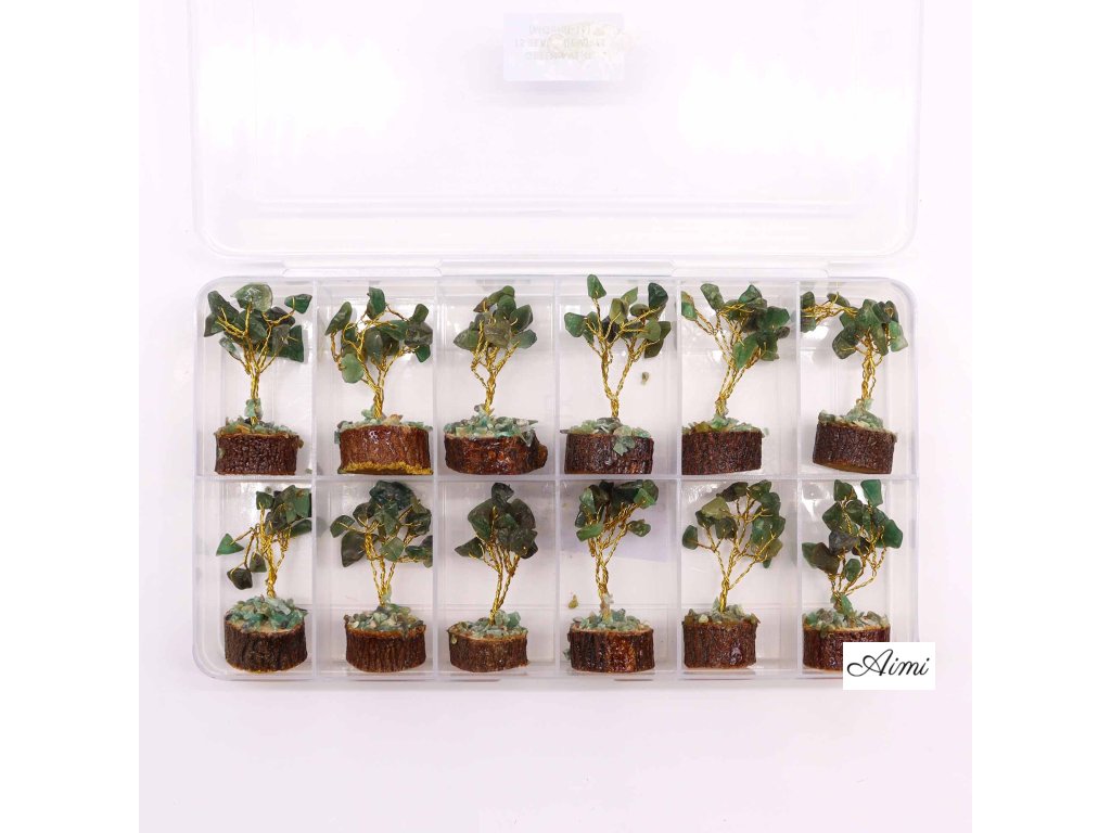 Mini Stromčeky z Drahých Kameňov na Drevenej Základni - Zelený Avanturín (15 kameňov)