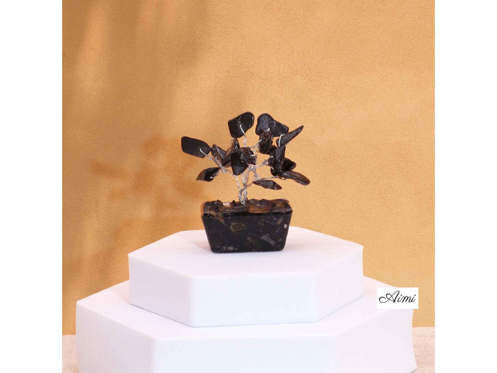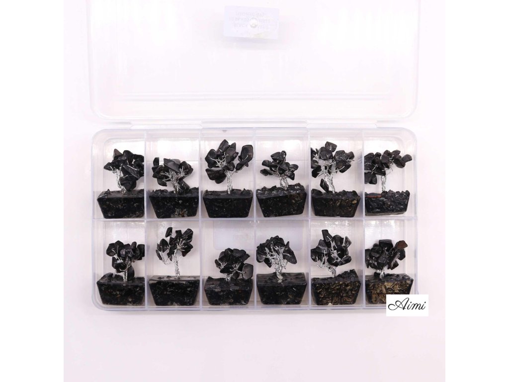 Mini Stromčeky z Drahých Kameňov na Orgonitovej Základni - Čierny Achát (15 kameňov)