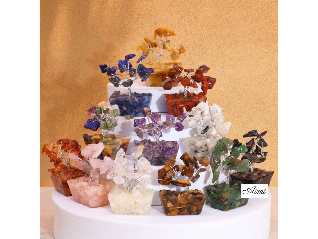 Mini Stromčeky z Drahých Kameňov na Orgonitovej Základni - Rôzne Druhy (15 kameňov)