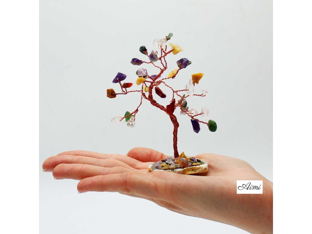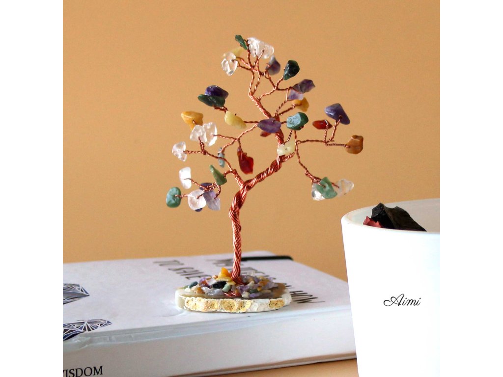 Tento 35-kamenný drahokamový stromček je ideálny na vyplnenie menších priestorov živou energiou. Je ako malý les drahých kameňov, ktorý ponúka zmes energií, ktoré vytvárajú príjemnú a vyváženú atmosféru. Vetvičky týchto stromov sú vyrobené z ohybného kovového drôtu, takže zákazníci si ich môžu prispôsobiť tak, aby vytvorili dynamický a jedinečný displej.