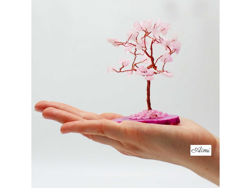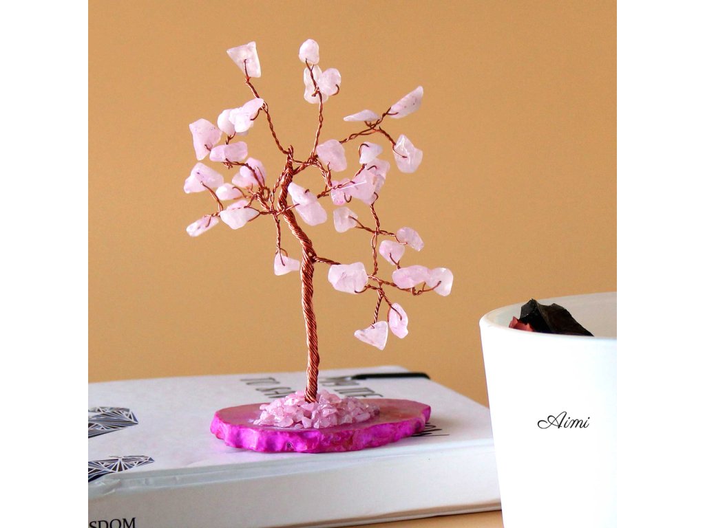 Stromček s Drahými Kameňmi - Ruženín - Podstavec z Ružového Achátu (35 kameňov)