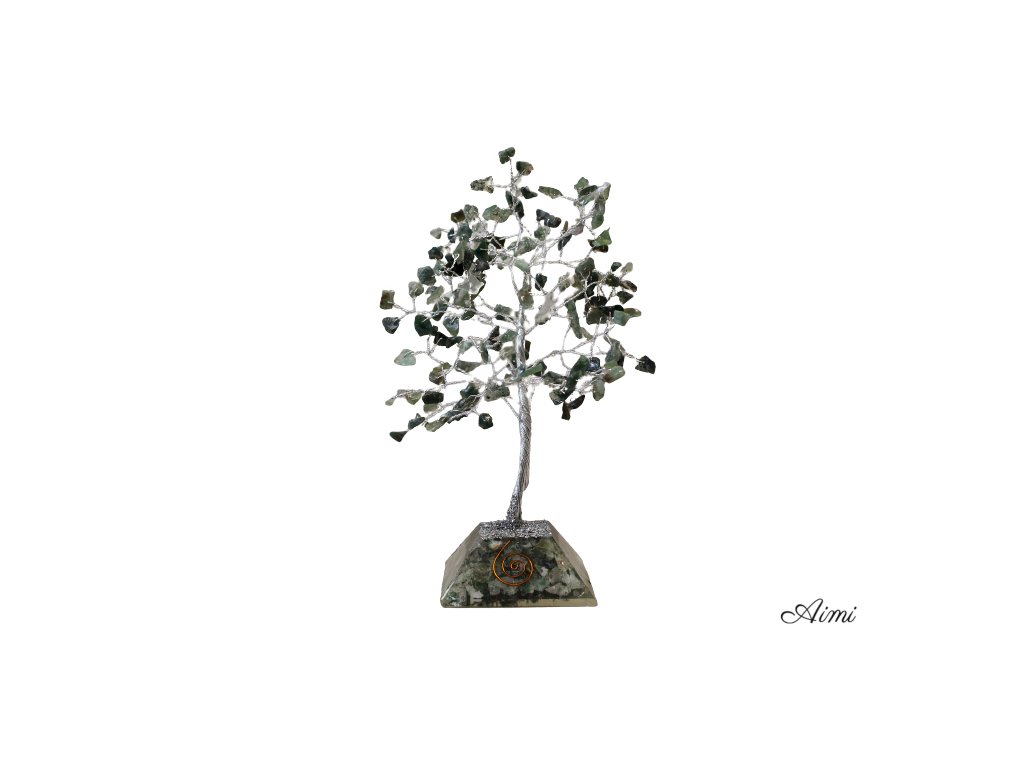 Stromček Šťastia s Orgonitovým Podstavcom - 160 Kamienkov - Machový Achát