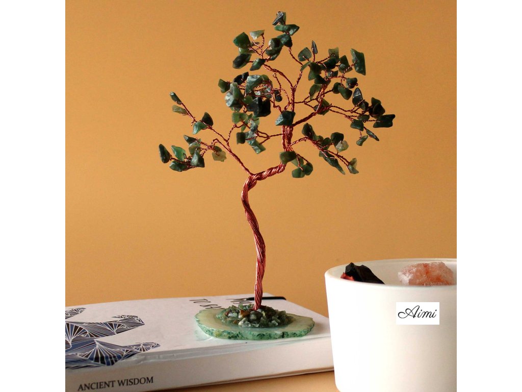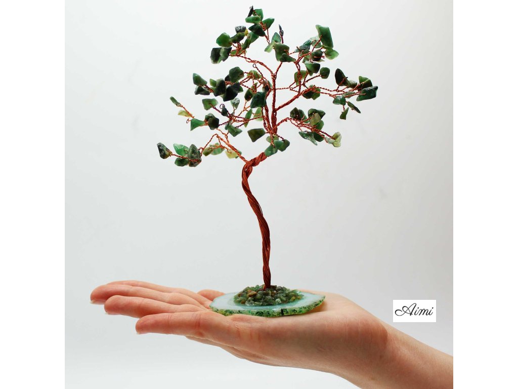 Veľký Stromček s Drahými Kameňmi - Zelený Avanturín - Podstavec zo Zeleného Achátu (100 kameňov)