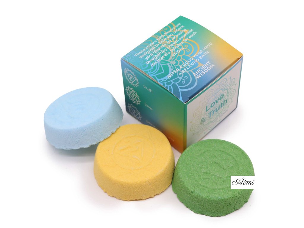 Veľkoobchodné s čakrové tablety do kúpeľa. Tieto šumivé tablety do kúpeľa sú navrhnuté tak, aby pomohli vašim zákazníkom odomknúť ich čakry. Pravda – Láska – Osobná sila