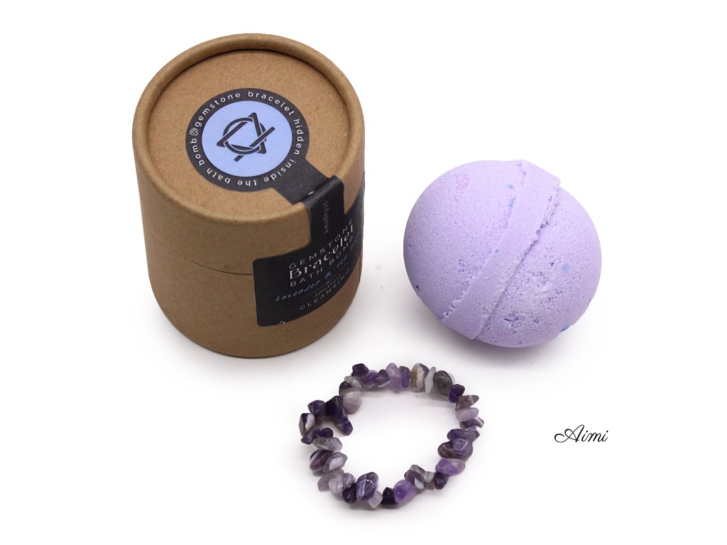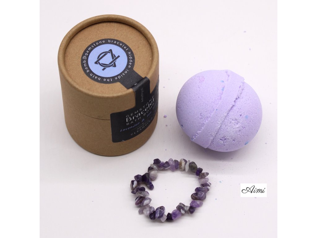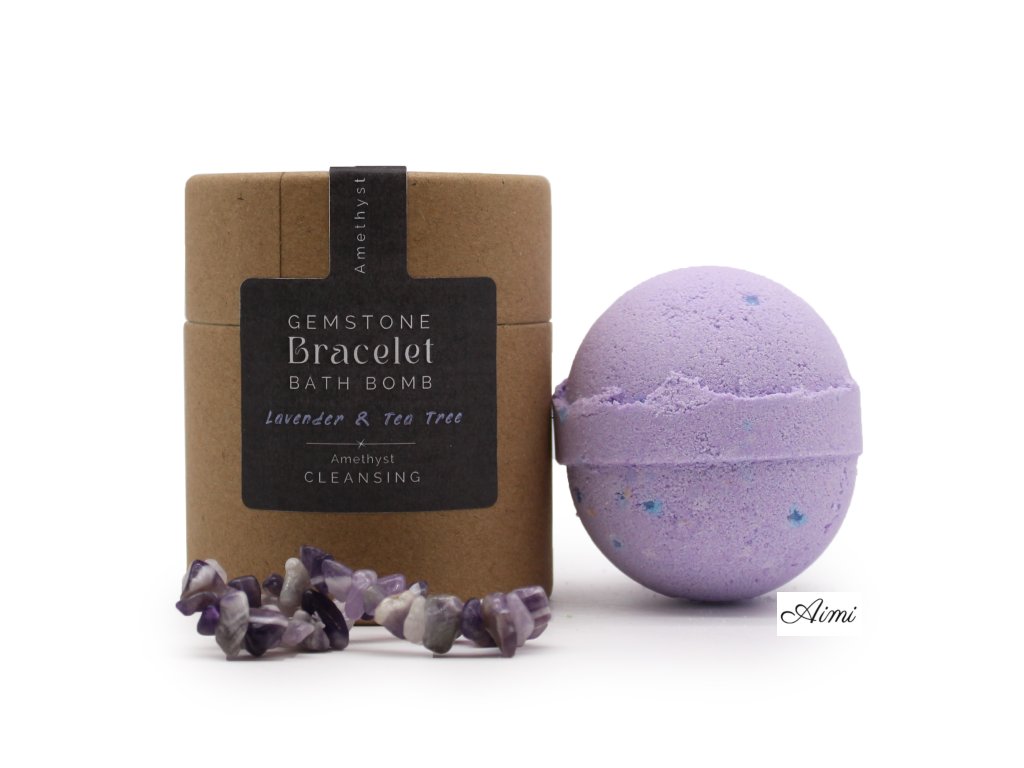 Bomba do kúpeľa s náramkom z drahého kameňa - Ametyst - Levanduľa a čajovník s morskou soľou.