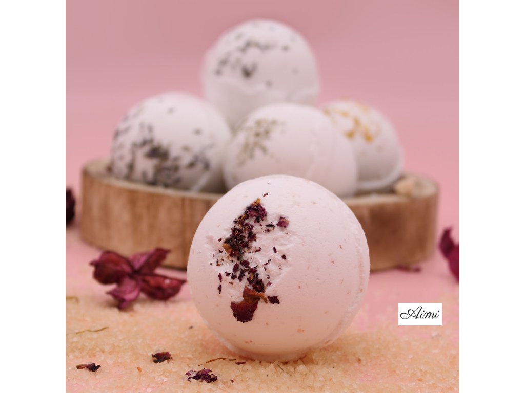 Materiály a ingredience | Sodium Bicarbonate, Citric Acid, Sodium Chloride, Aqua, Rosa Centifolia Flowers, Cananga Odorata Oil, Cocos Nucifera oil, *Benzyl Benzoate, *Benzyl Salicylate, *Farnesol, *Linalool. *Naturally occurring in Essential Oils |