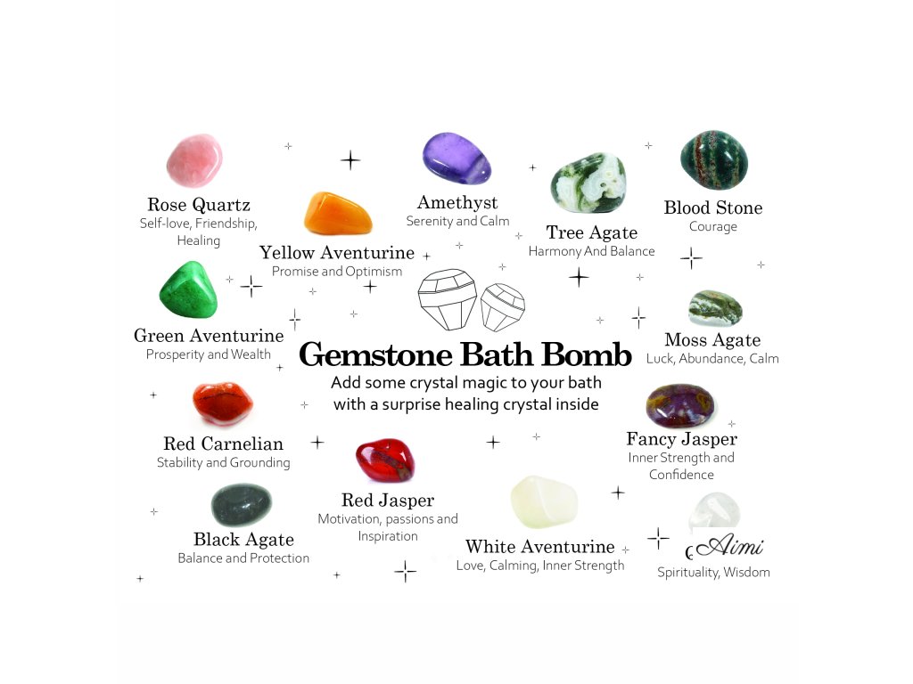 Počas kúpeľa si môžu prečítať význam objaveného drahokamu pomocou informačného letáku, ktorý je priložený ku každej bombe. Majú pekné farby a trocha trblietok, no hlavne sa v nich skrýva prekvapenie. Skutočný drahokam, ktorý mu dodáva extra hodnotu.