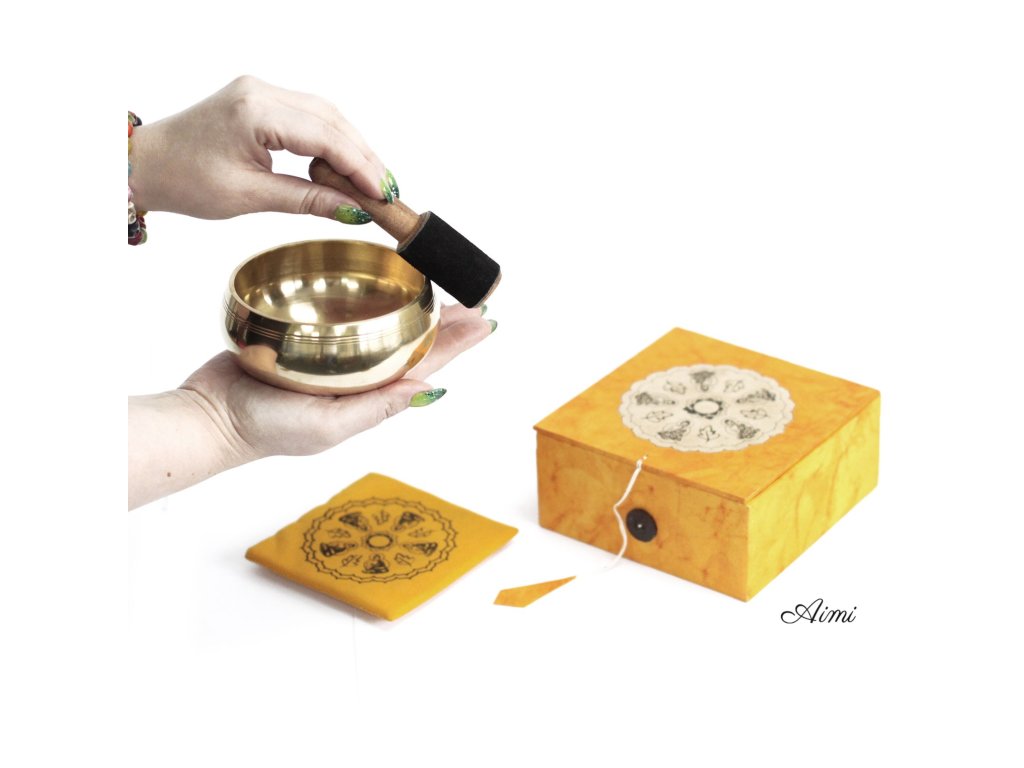 Dostupný perfektný tibetský darček v rôznych farbách. Použite drevený koniec na ''rozospievanie'' misky. S koncom gongu udržujete spev misky. Darček, ktorý obdarovaného viac než len rozveselí - prinesie vnútorný pokoj.