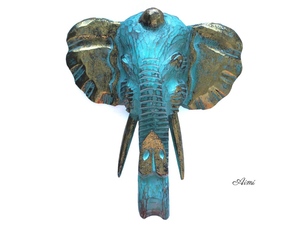 Zlato-tyrkysová hlava slona je majestátnym symbolom múdrosti, odvahy, postavy a sily.